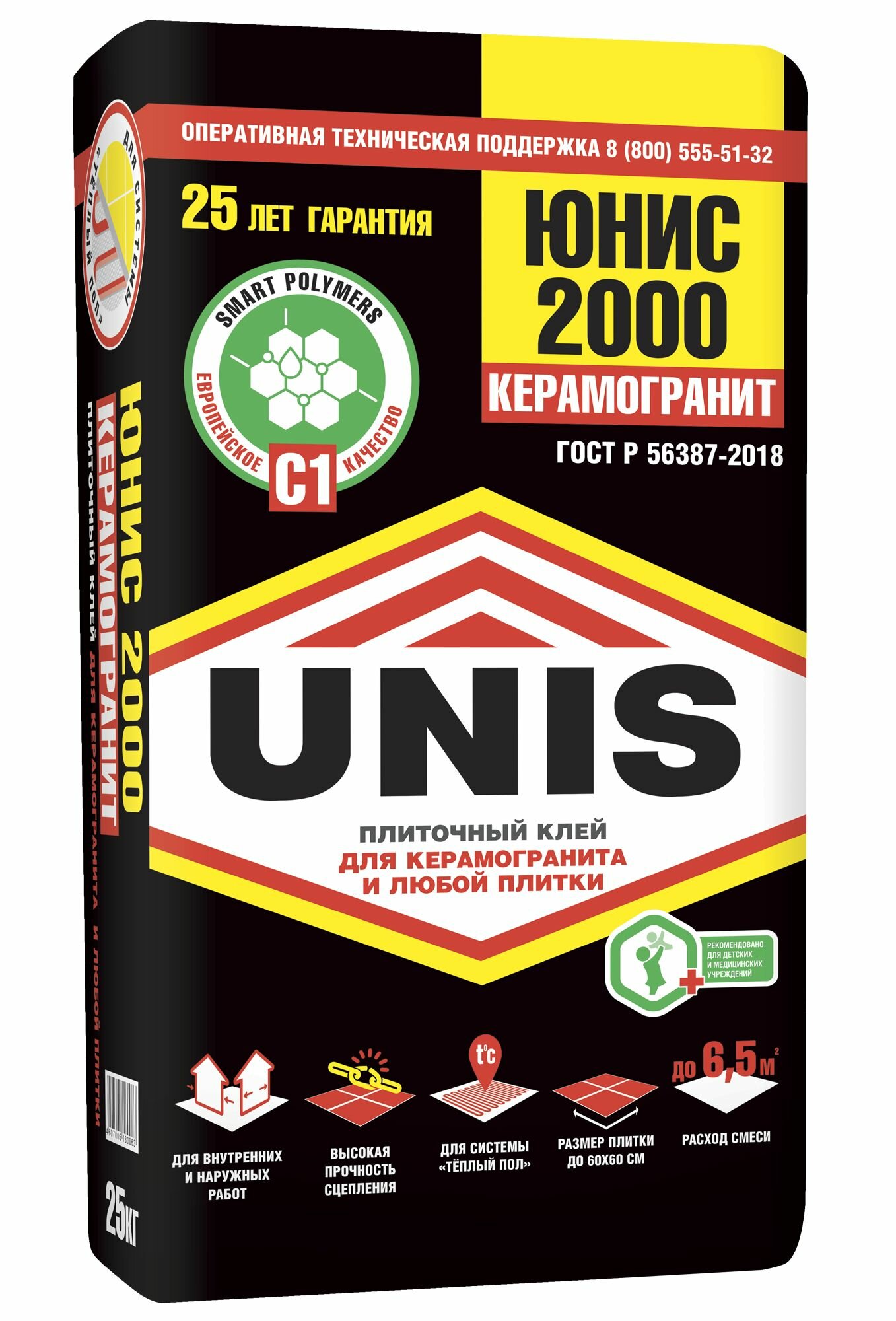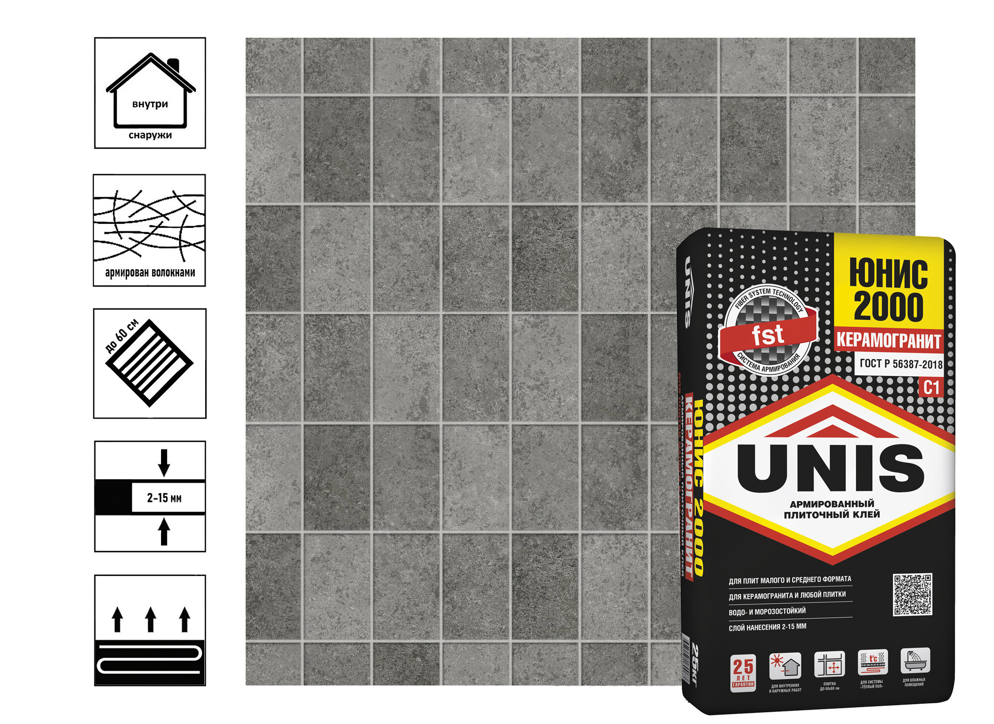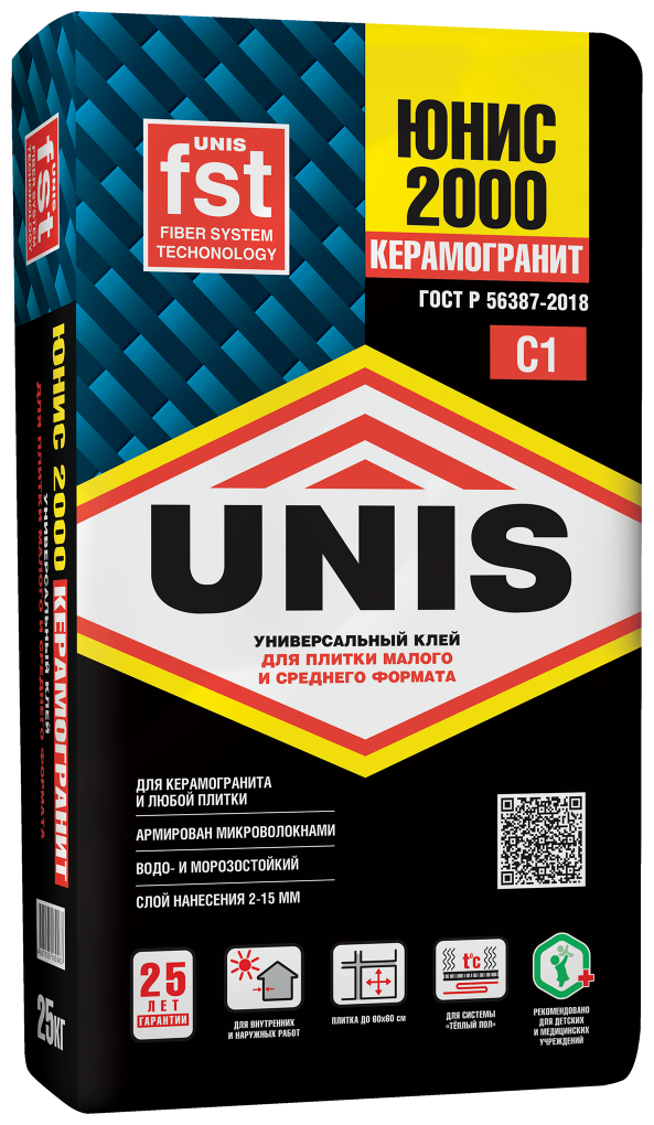 Юнис 2000 клей плиточный (25кг) / UNIS 2000 клей для плитки и камня (класс С1) (25кг)