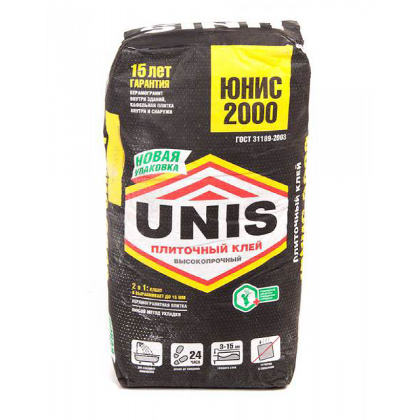 Строительные смеси UNIS 2000. 25 кг Клей для плитки