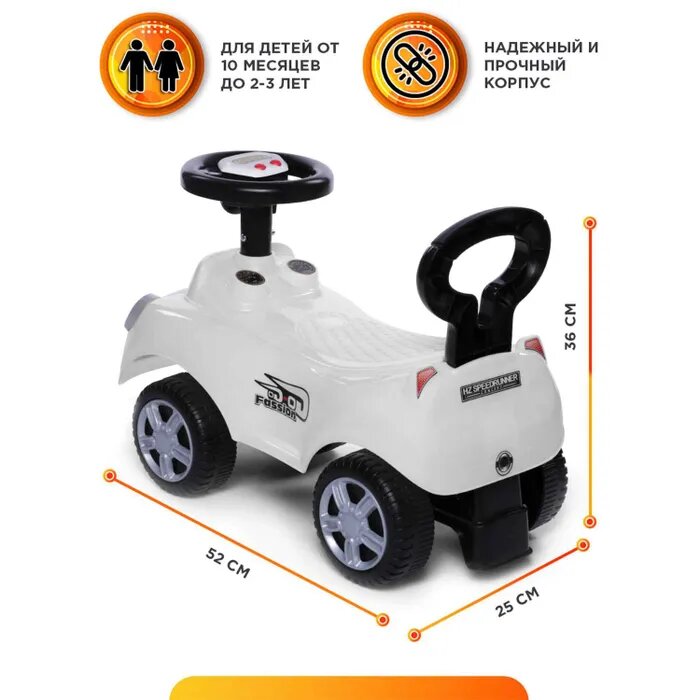 Купить Каталка BabyCare Speedrunner музыкальный руль белый