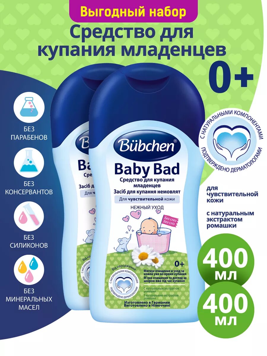 Купить Bubchen Средство для купания младенцев, Для чувствительной кожи, 400 мл, 2 шт.