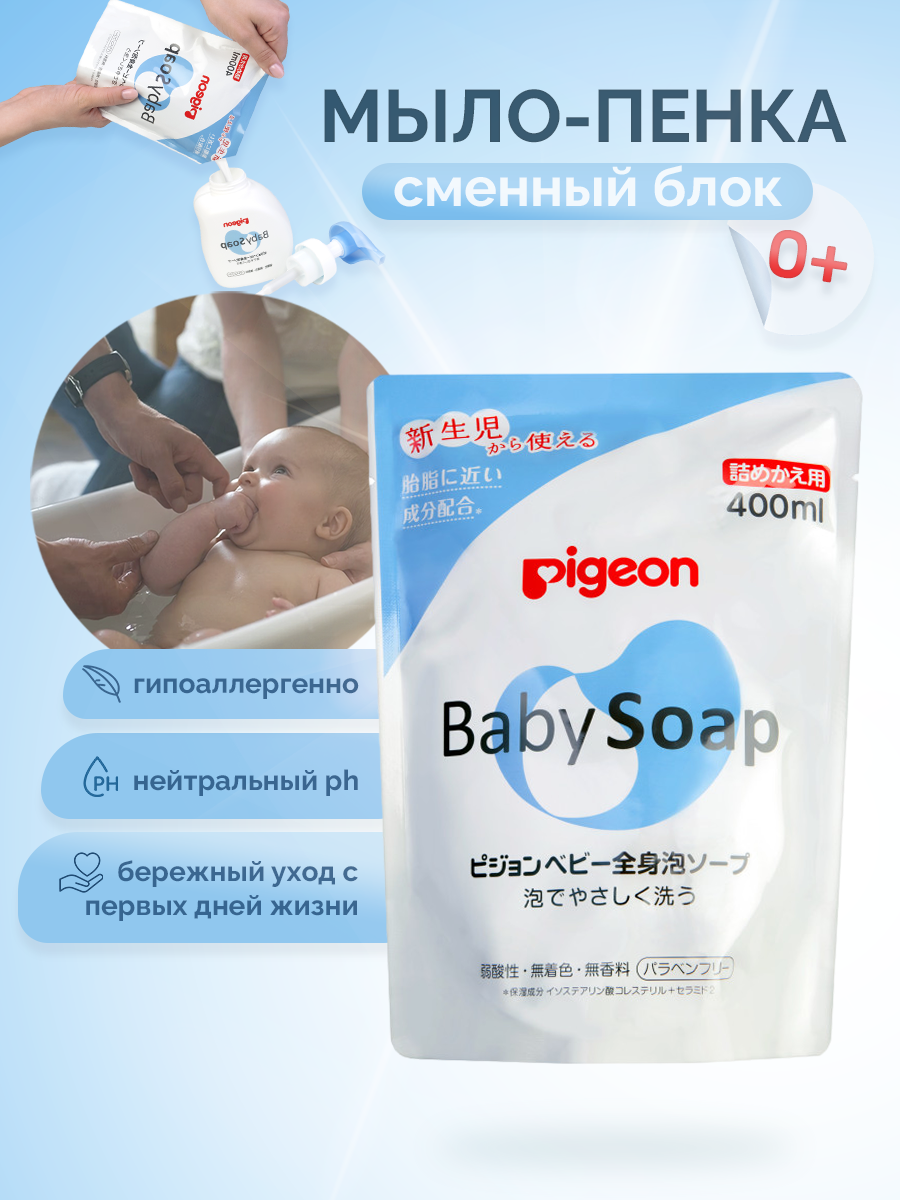 Мыло-пенка PIGEON для детей Baby foam Soap возраст 0+ мягкая упаковка 400мл 1шт