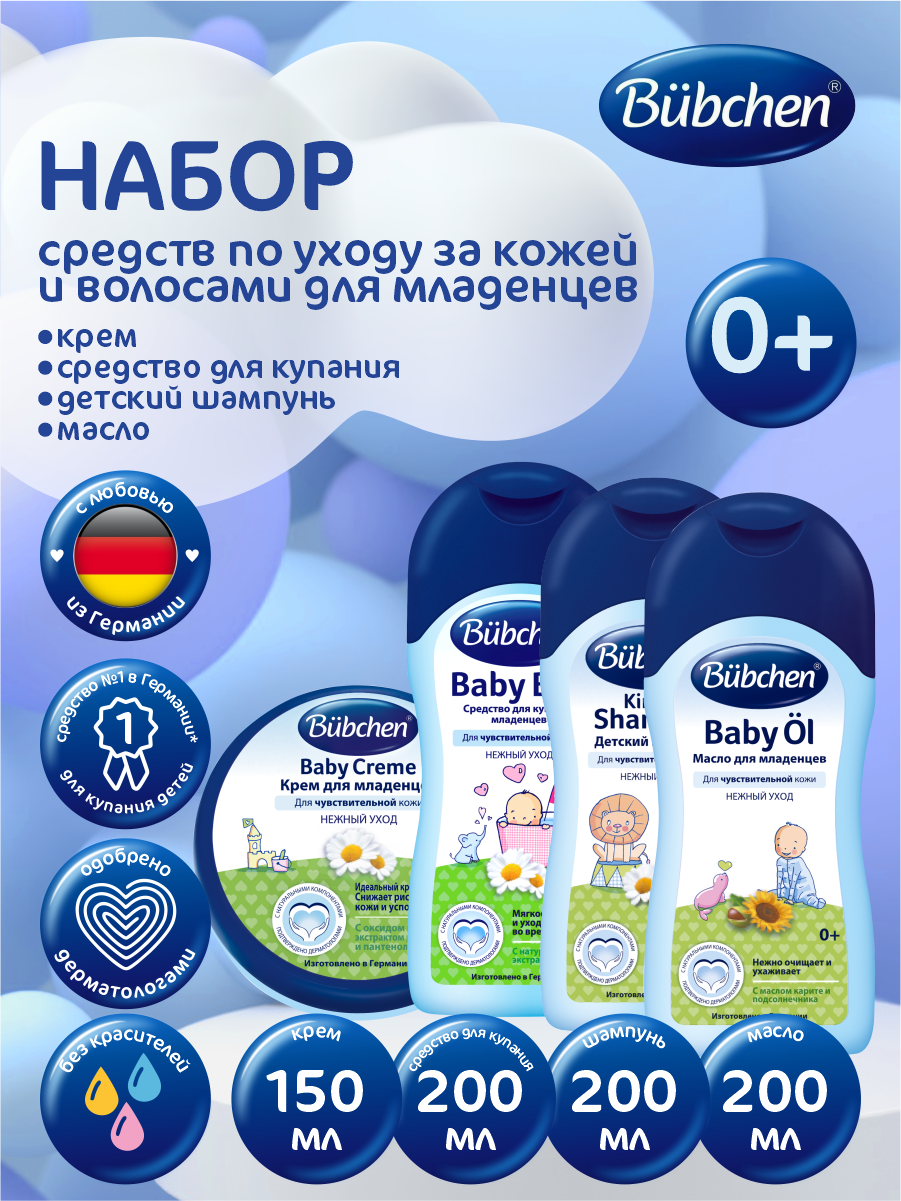 Купить Bubchen Крем для младенцев 150 мл.+Масло 200 мл.+Ср-во для купания 200 мл.+Шампунь 200 мл.