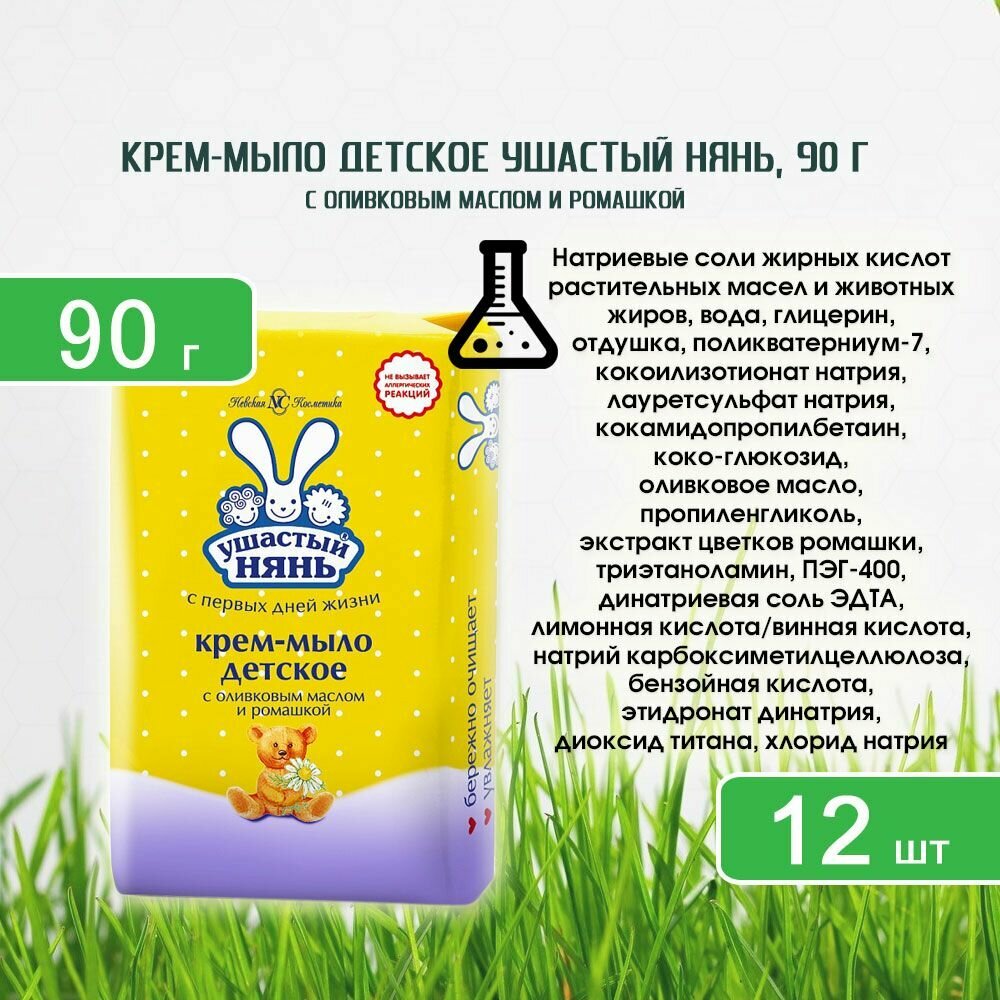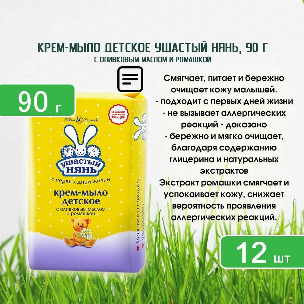 Крем-мыло детское Ушастый нянь с оливковым маслом и экстрактом ромашки, 90г х 12шт