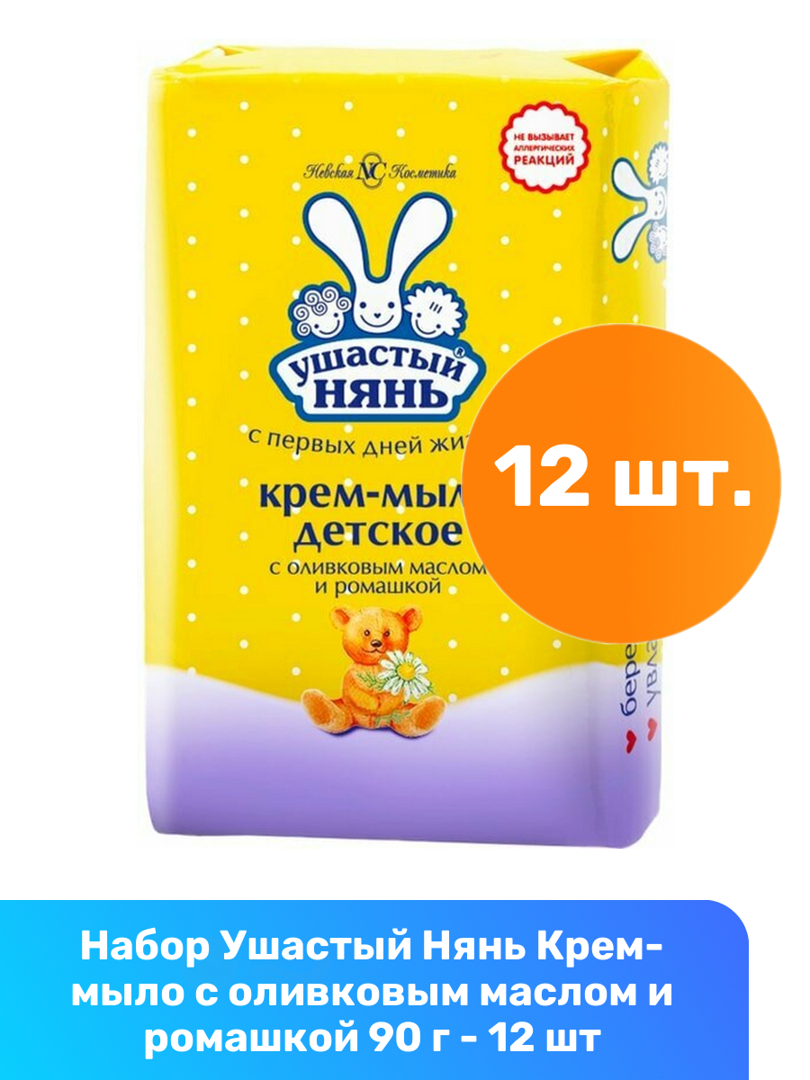 Ниже Вы можете прочитать отзывы на Детское крем-мыло Ушастый нянь с оливковым маслом и ромашкой 90 г х 12 шт, ознакомится с подробными характеристиками, посмотреть интересные обзоры и фотографии на Детское крем-мыло Ушастый нянь с оливковым маслом и ромашкой 90 г х 12 шт.