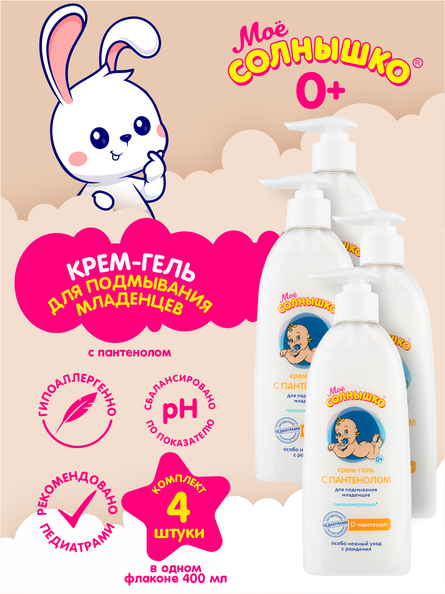 Купить Крем-гель для подмывания младенцев с пантенолом Мое Солнышко 400 мл. х 4 шт.