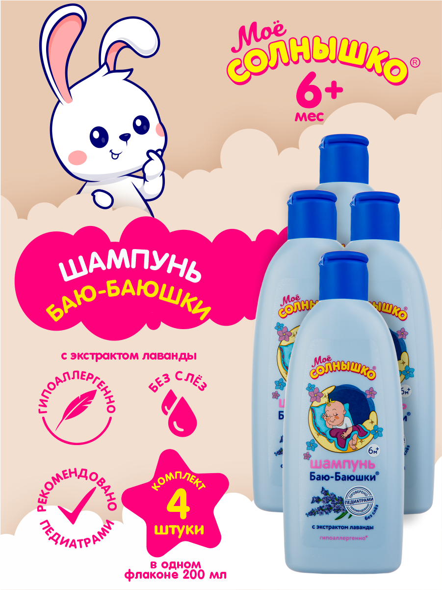 Купить Шампунь Баю-Баюшки с экстрактом лаванды Мое Солнышко 200 мл. х 4 шт.