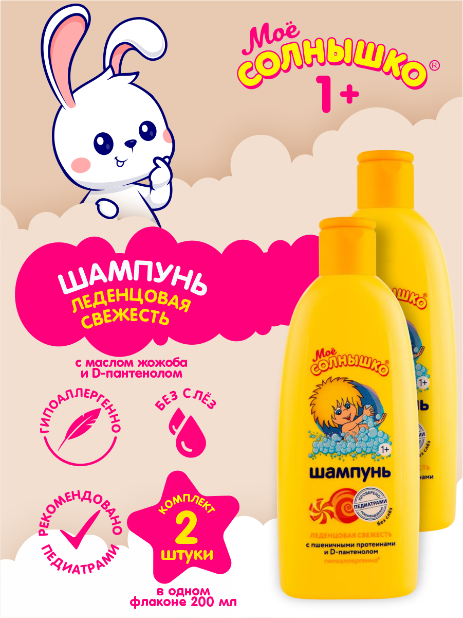 Купить Шампунь Леденцовая свежесть с пшеничными протеинами Мое Солнышко 200 мл. х 2 шт.