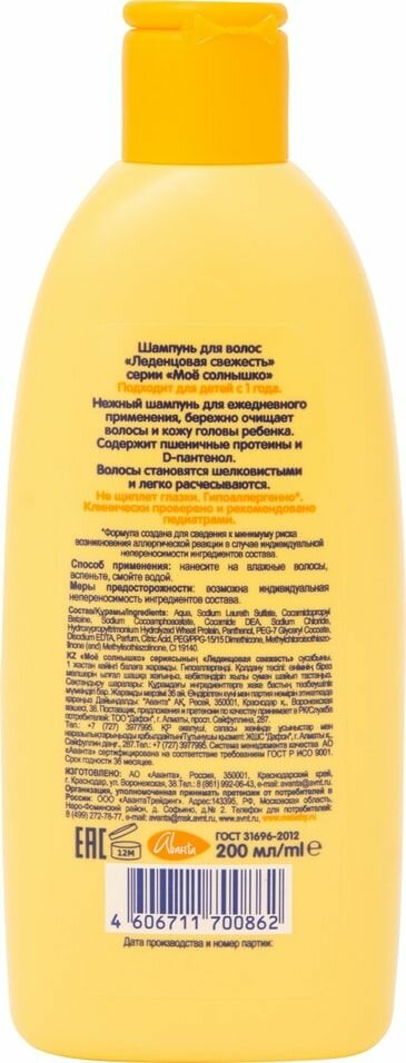 Аванта Детский шампунь леденцовая свежесть Мое солнышко 200 мл