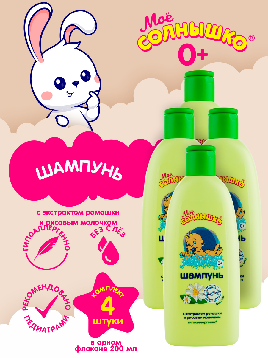 Купить Шампунь с экстрактом ромашки и рисовым молочком Моё Солнышко 200 мл. х 4 шт.