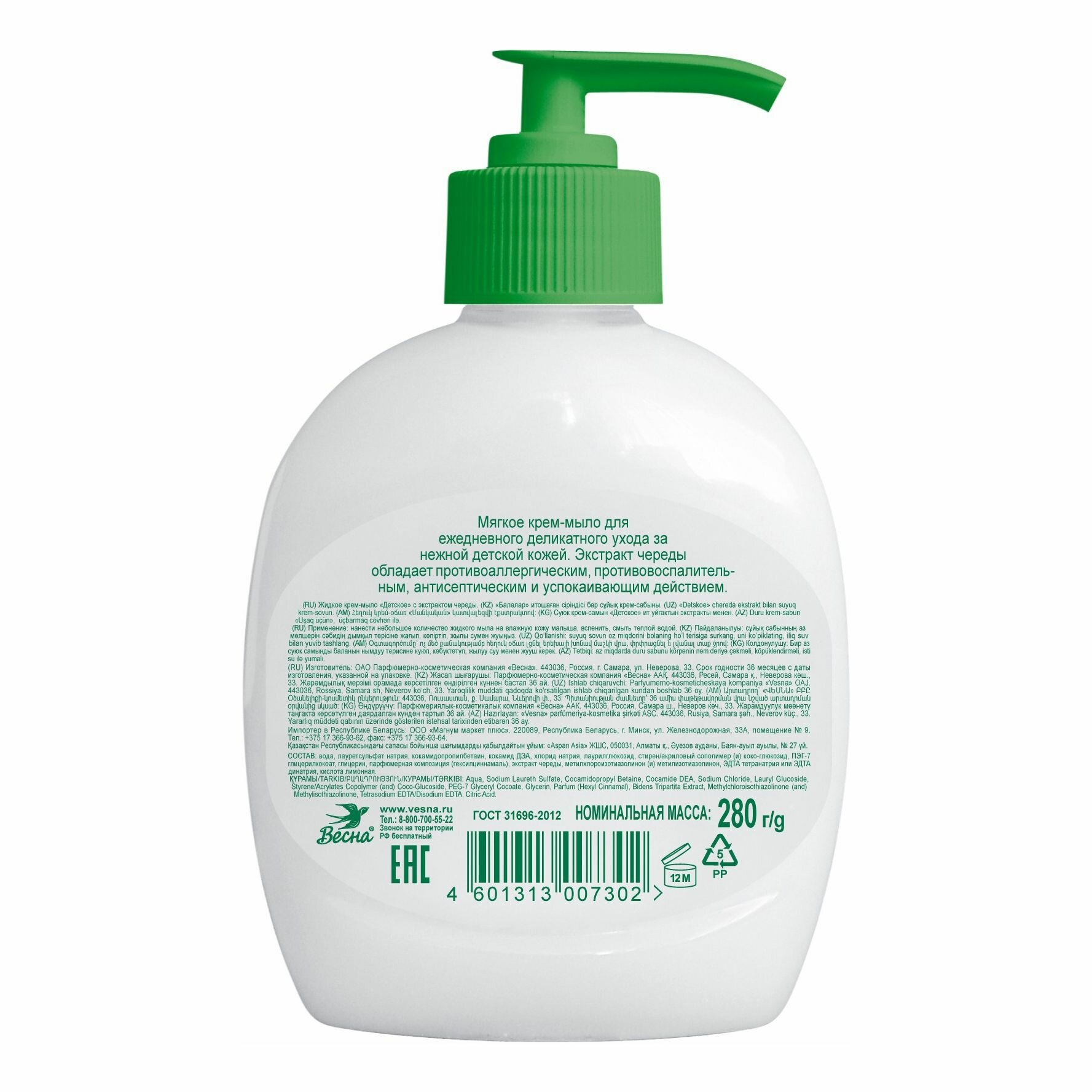 Весна Крем-мыло жидкое Детское ухаживающее с экстрактом череды, 280 г
