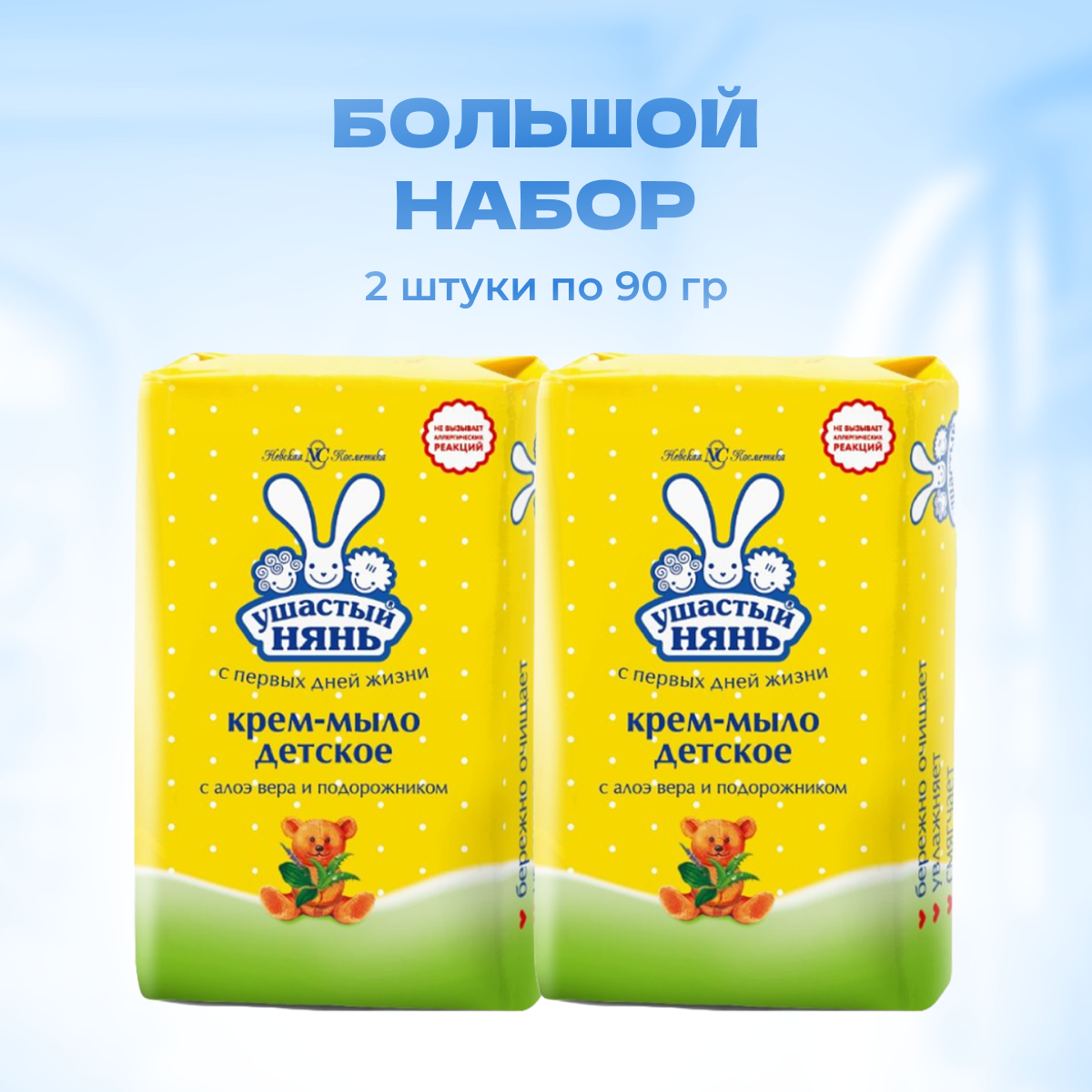 Детское крем-мыло Ушастый нянь, Алоэ и подорожник, гипоаллергенное, набор 6 шт. по 90 г.