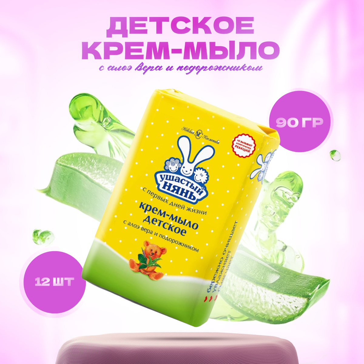 Детское крем-мыло Ушастый нянь с алоэ вера и подорожником 90 г х 12 шт