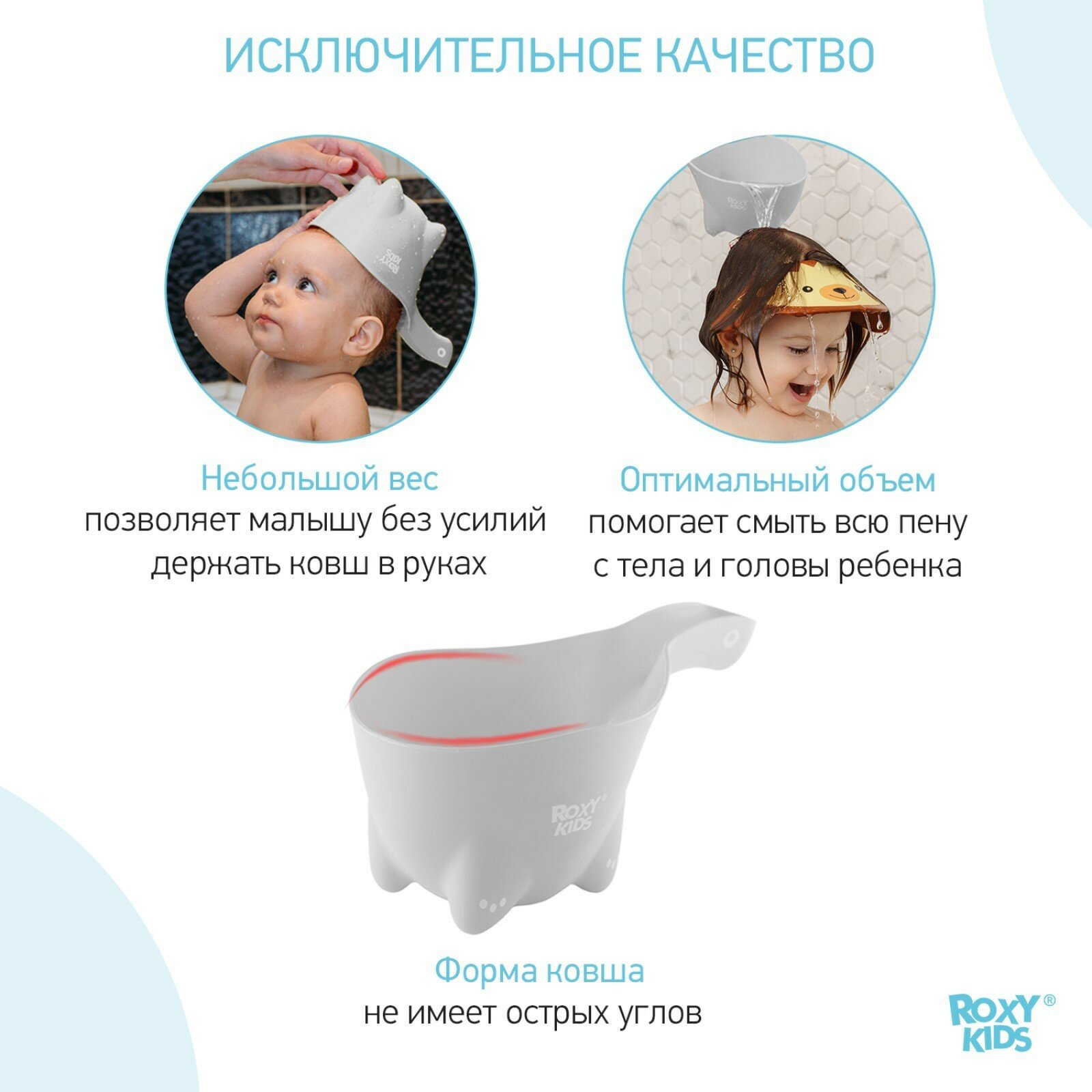 Ковшик детский для купания и мытья головы Dino Scoop от ROXY KIDS. Цвет белый