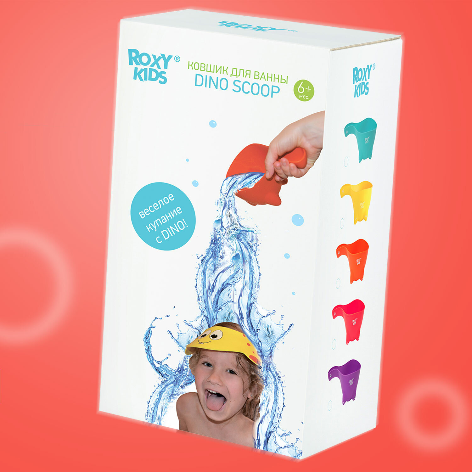 Ковшик детский для купания и мытья головы Dino Scoop от ROXY KIDS.Цвет коралловый.