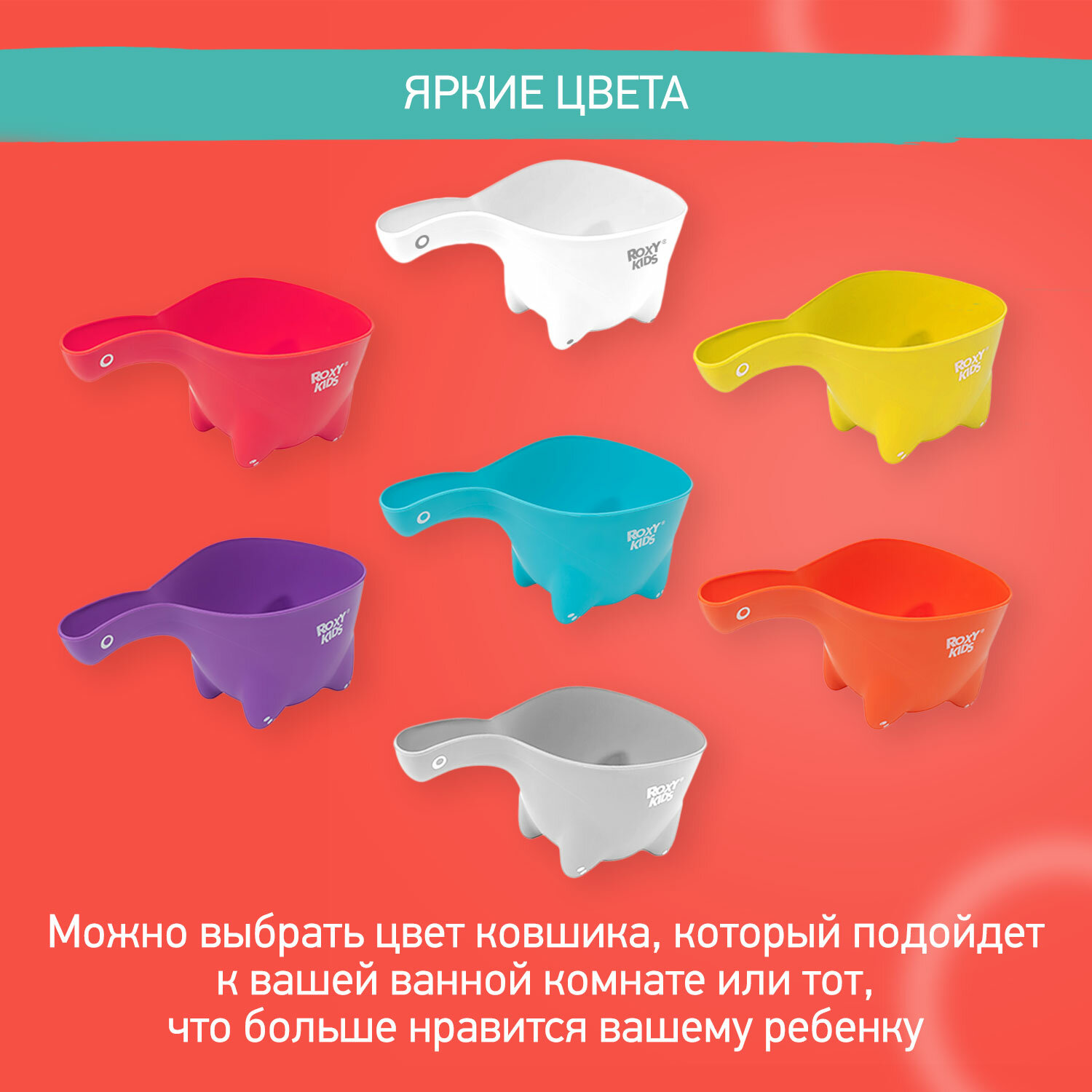 Roxy-kids Ковш для купания Dino Scoop, 800мл., цвет коралловый