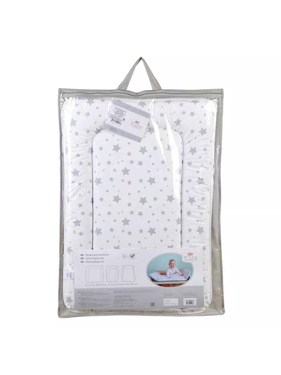 Купить Матрас для пеленания Polini kids Звезды на комод 70*50см Белый-Серый 0002618-24 .