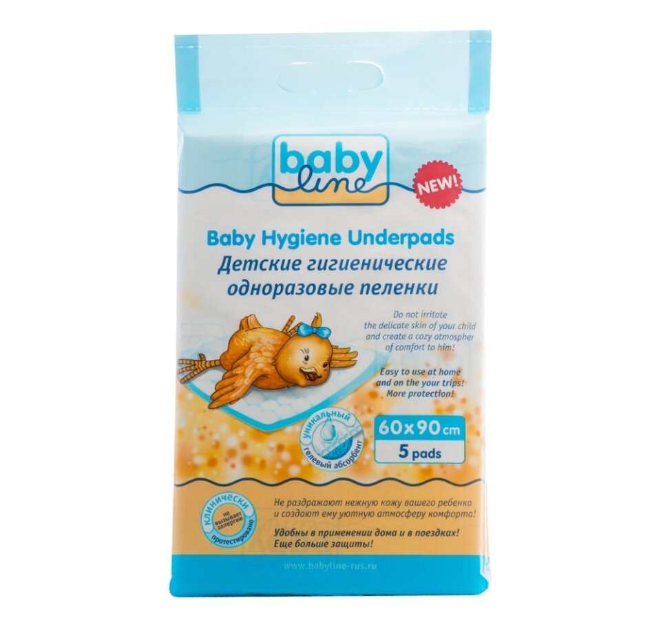 Пеленки одноразовые детские Babyline, 90х60 см., 5 шт.
