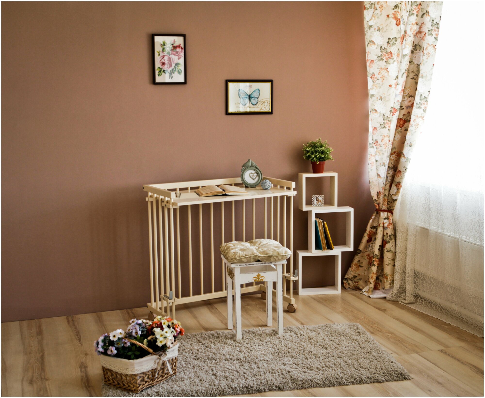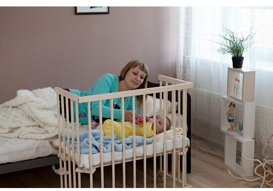 | Плюсы: | Можно настроить на любую высоту, вплотную встаёт к родительской кровати |