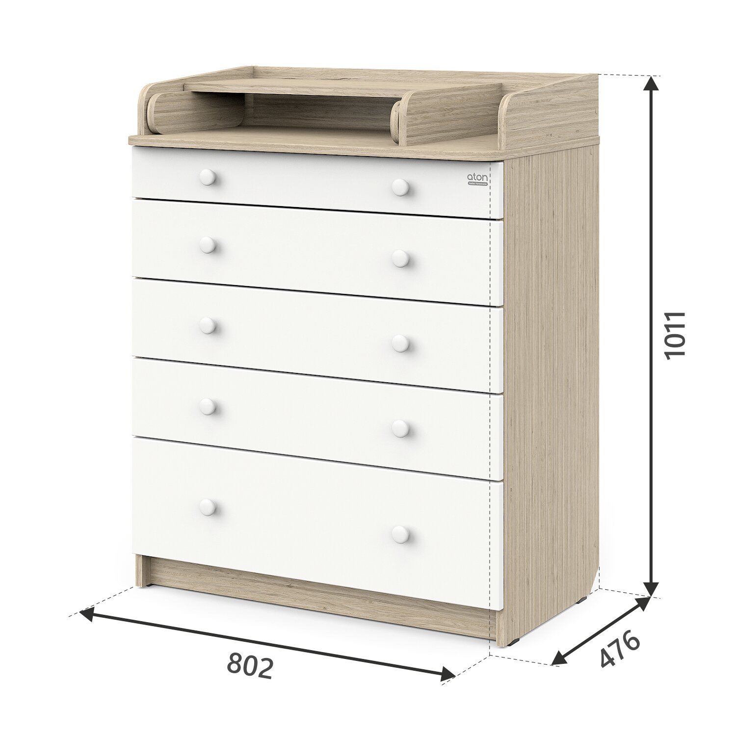 Комод пеленальный aton LEO, 5 ящиков с органайзером, дуб сонома