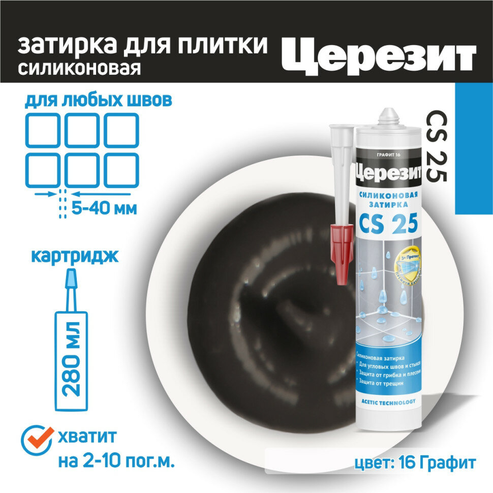 Затирка-герметик силиконовая Церезит CS 25 №16 "Графит", 280мл