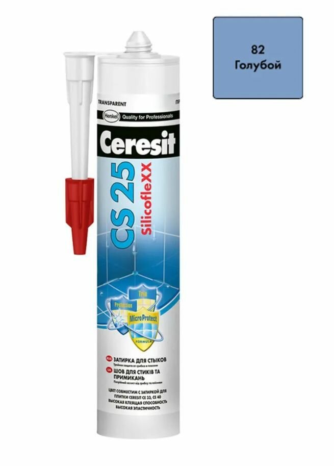 СохранитьГерметик-затирка силиконовая противогрибковая Церезит CS 25 82 голубой 280 мл интересное: