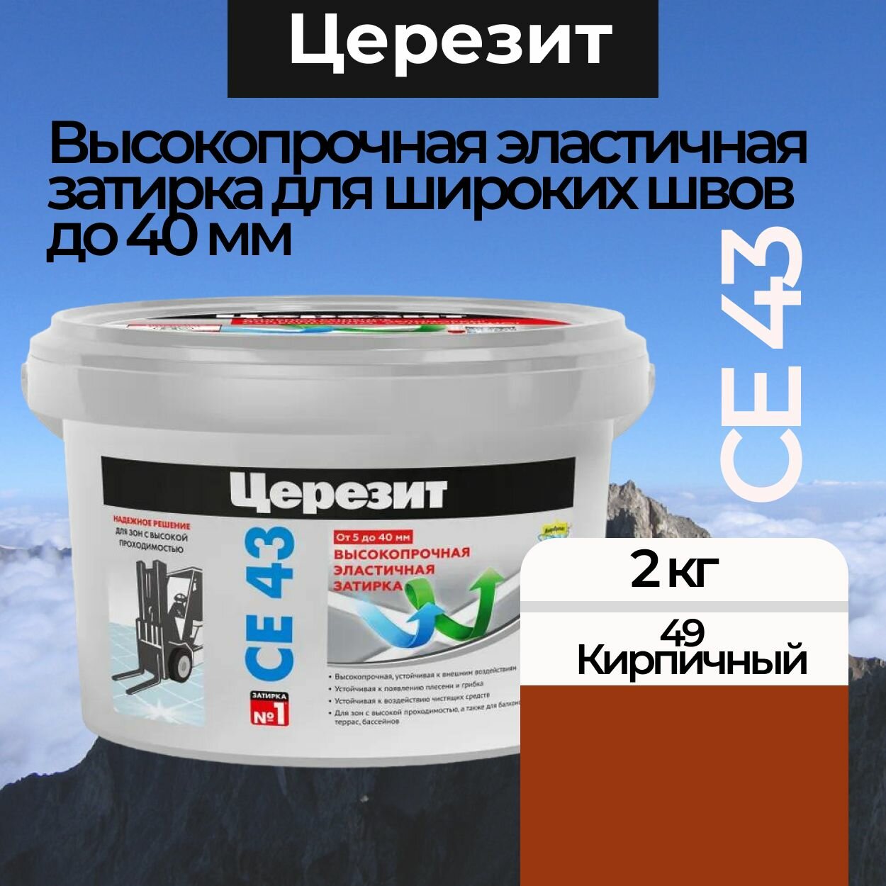 Затирка цементная для широких швов высокопрочная Ceresit CE 43 2кг, 49-кирпич