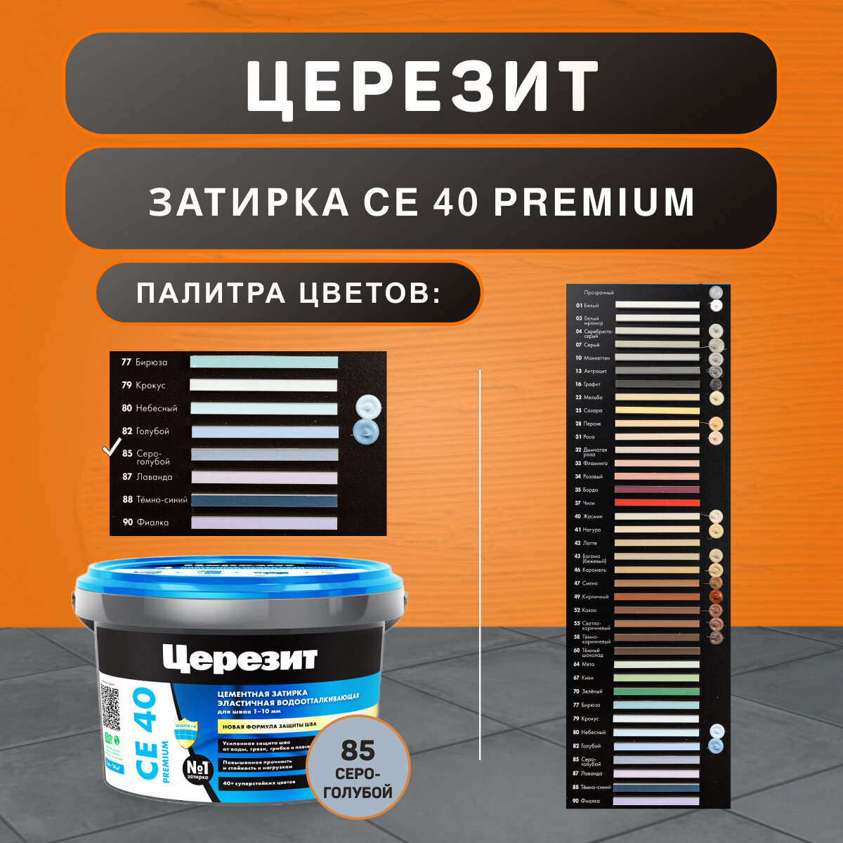 СохранитьЗатирка для плитки Церезит (Ceresit) CE 40, №85 серо-голубая, 2 кг интересное: