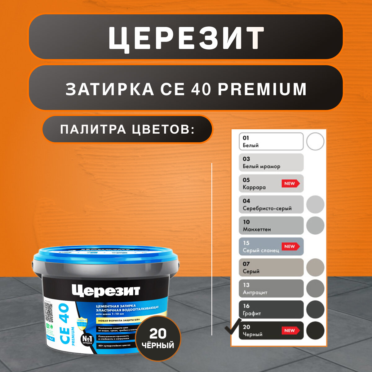 Затирка Церезит СЕ 40/2 Premium №20 Чёрный 2кг