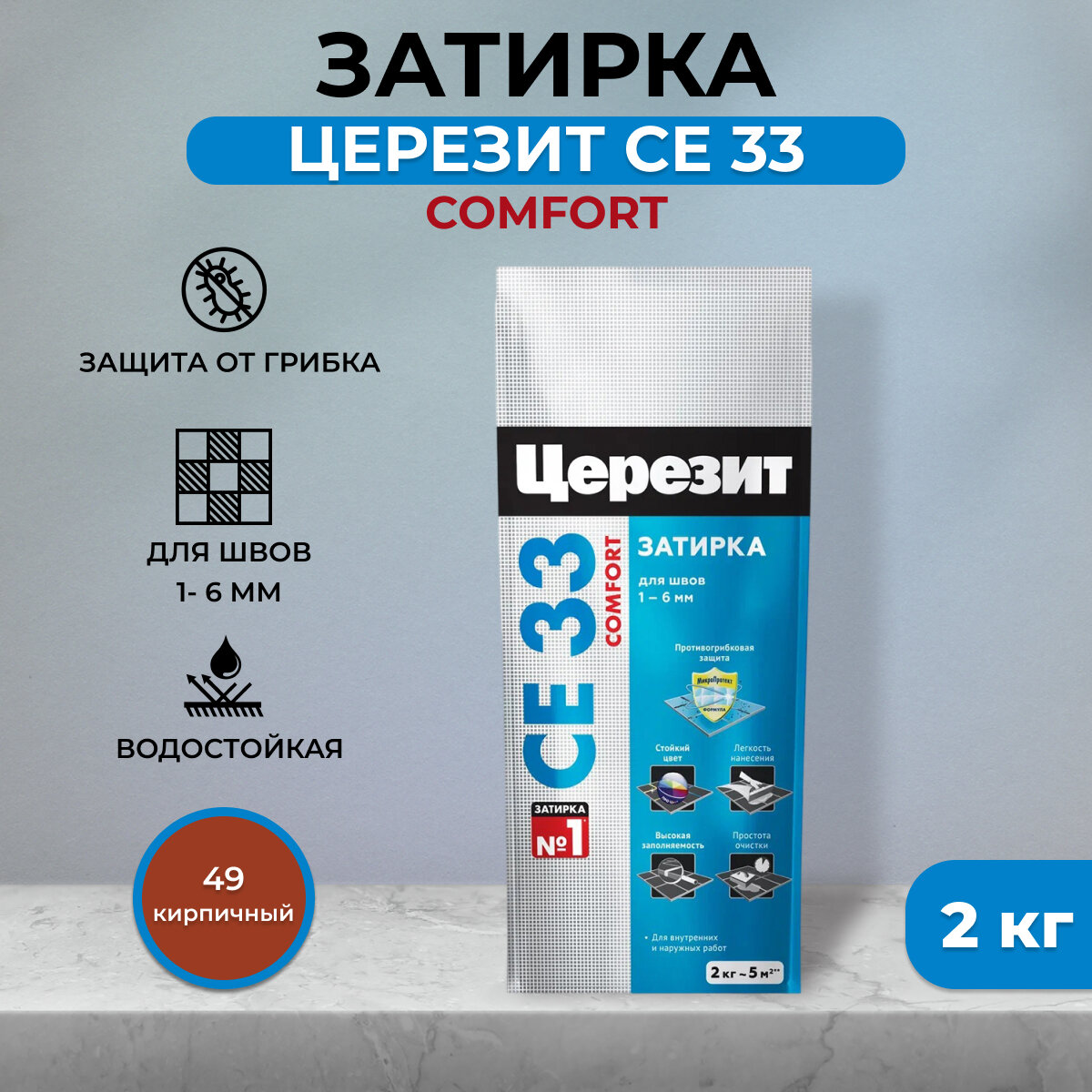 Затирка церезит / CERESIT CE 33 Comfort, 2 кг, кирпич 49