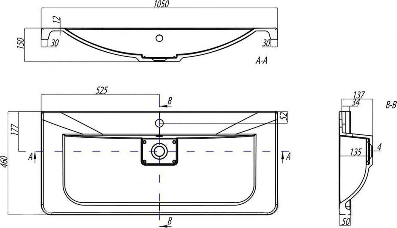 | Расположение отверстия под смеситель | в центре |