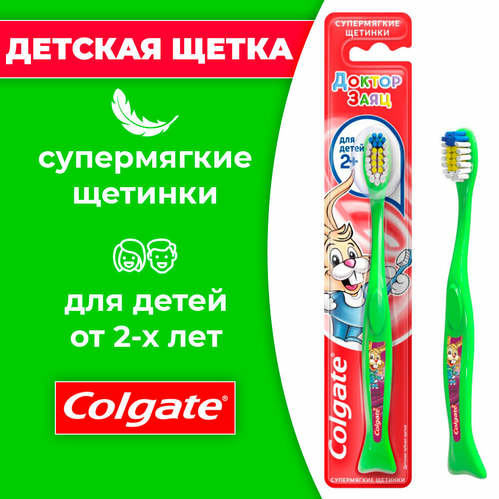 Зубная щетка Colgate Доктор Заяц детская 2+, супермягкая, цвет в ассортименте