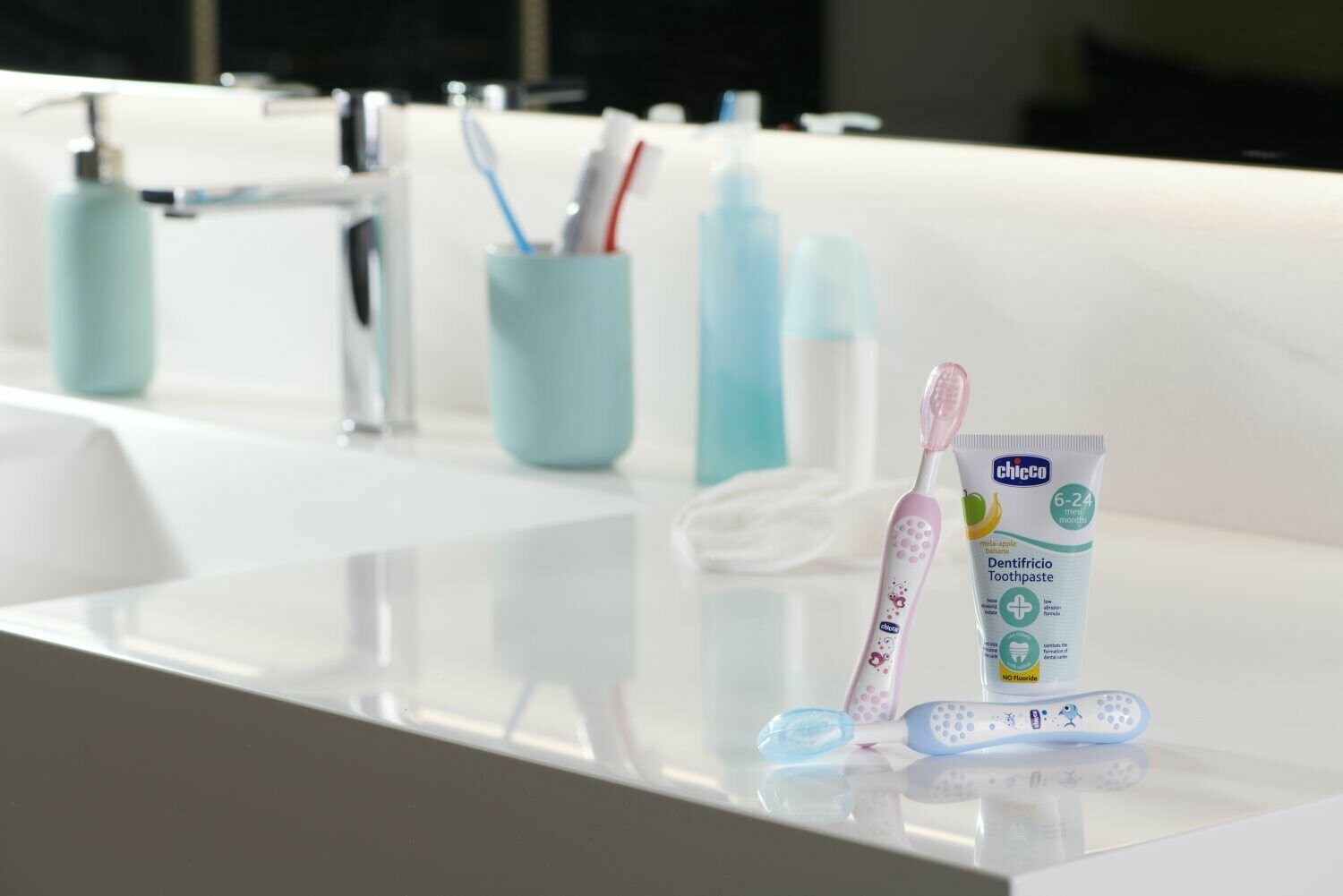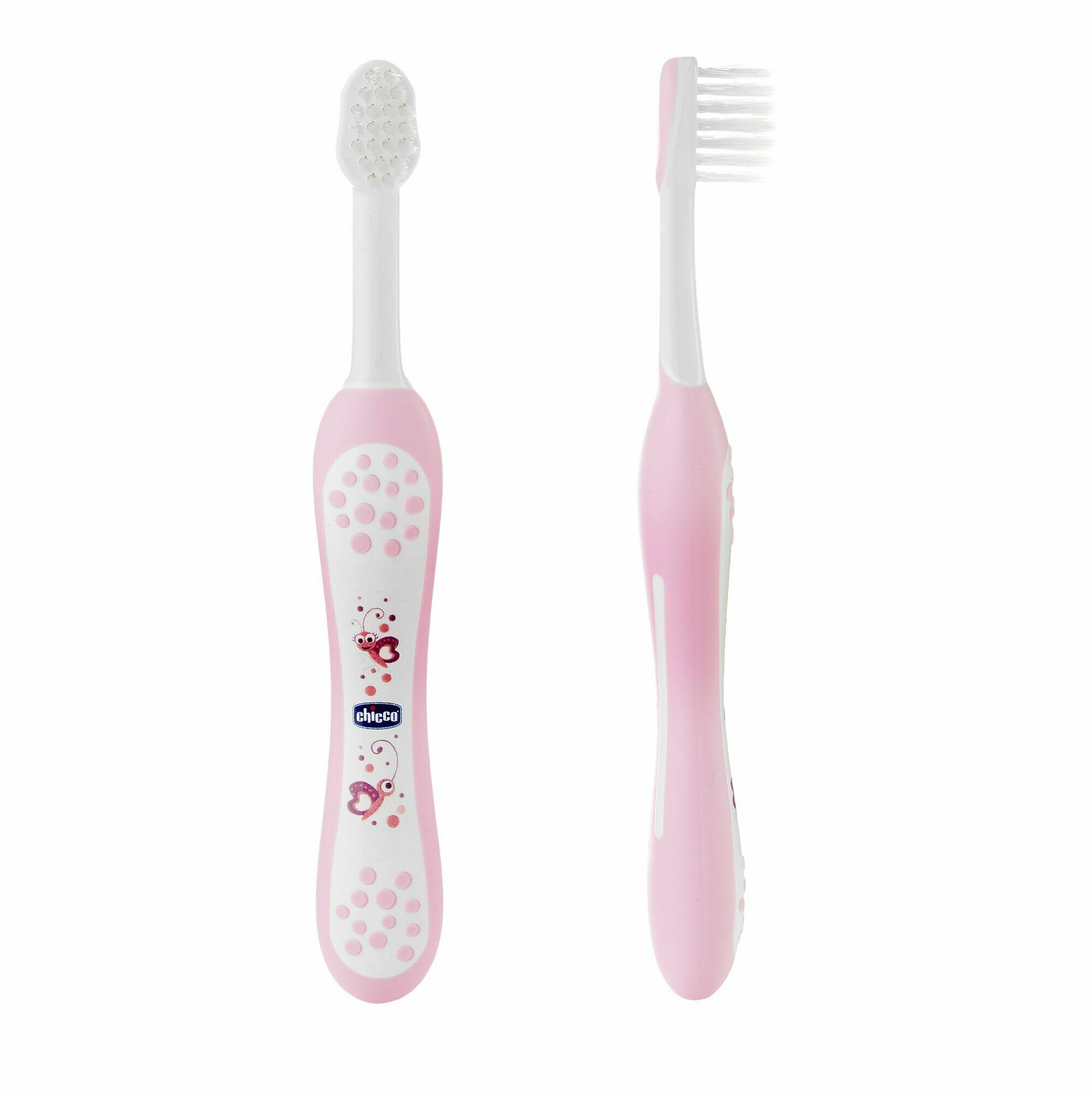Купить Детская зубная щётка с колпачком Chicco, от 6 месяцев до 3 лет, мягкая, с эргономичной ручкой, розовая