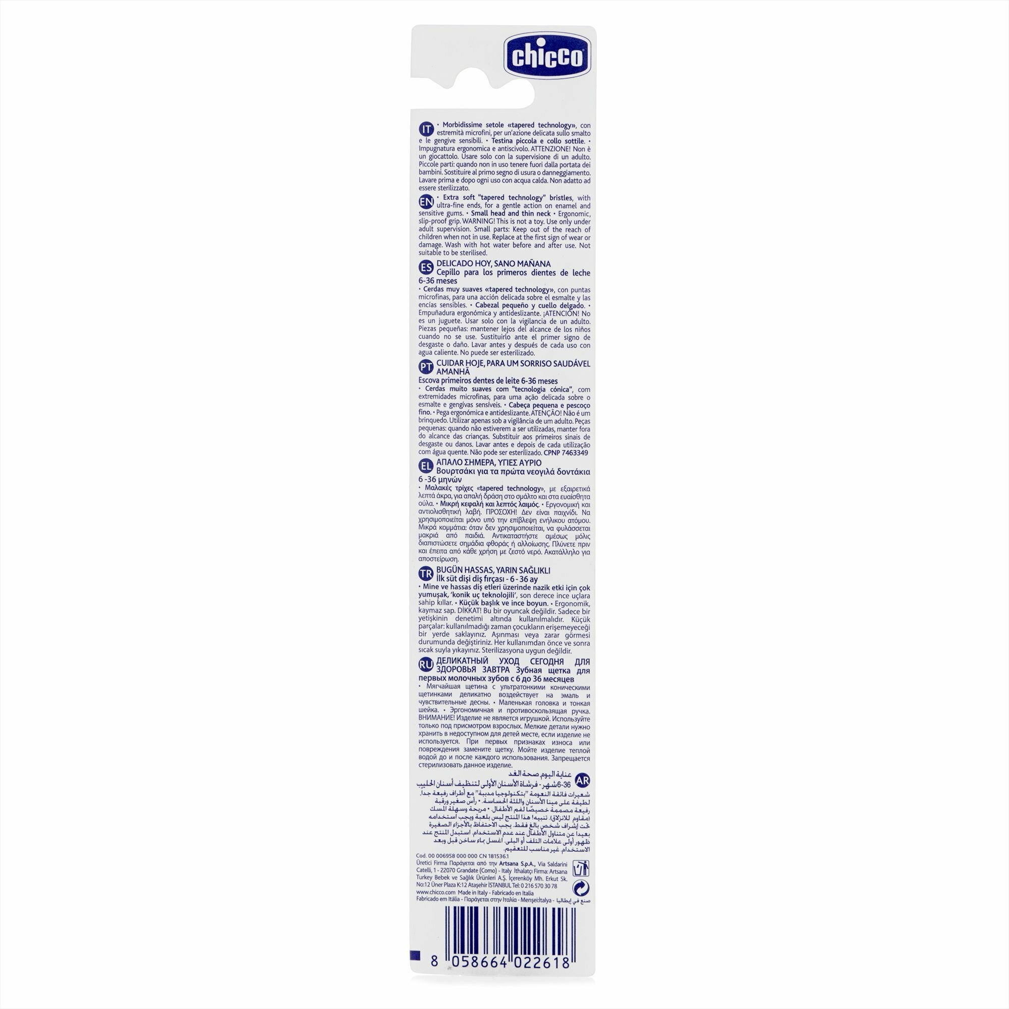 Купить Детская мягкая зубная щётка CHICCO первая щетка для зубов от 6 месяцев до 3 лет, с эргономичной ручкой, зелёная