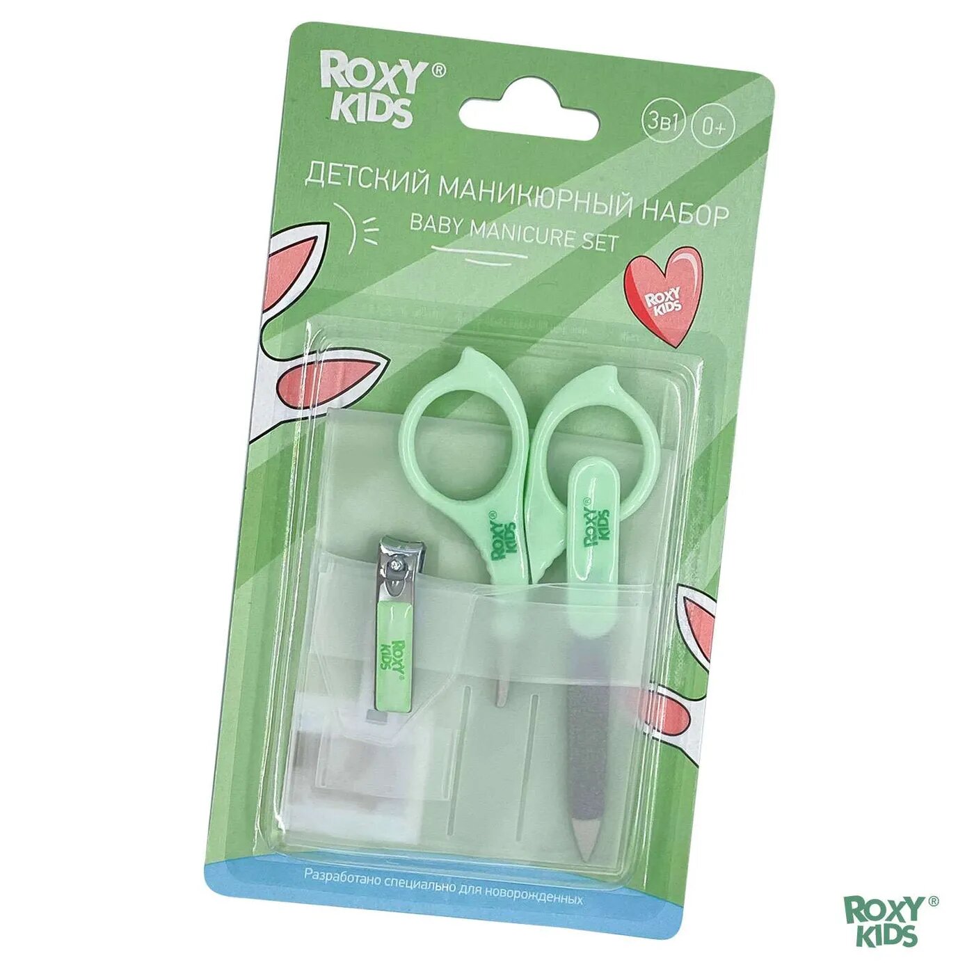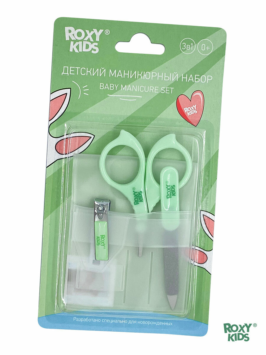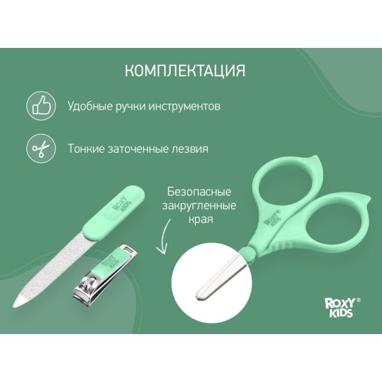 Маникюрный набор от ROXY-KIDS: ножницы, пилочка, кусачки 0+. Цвет зеленый