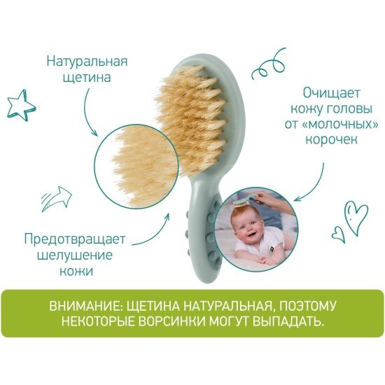 Детская щеточка с расческой. Ворс из натуральной щетины цвет серо-зеленый