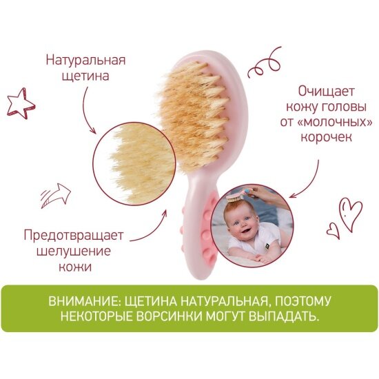 СохранитьРасческа-щеточка Roxy-kids Rbh-001-r с гребешком ворс из натуральной щетины розовая . интересное: