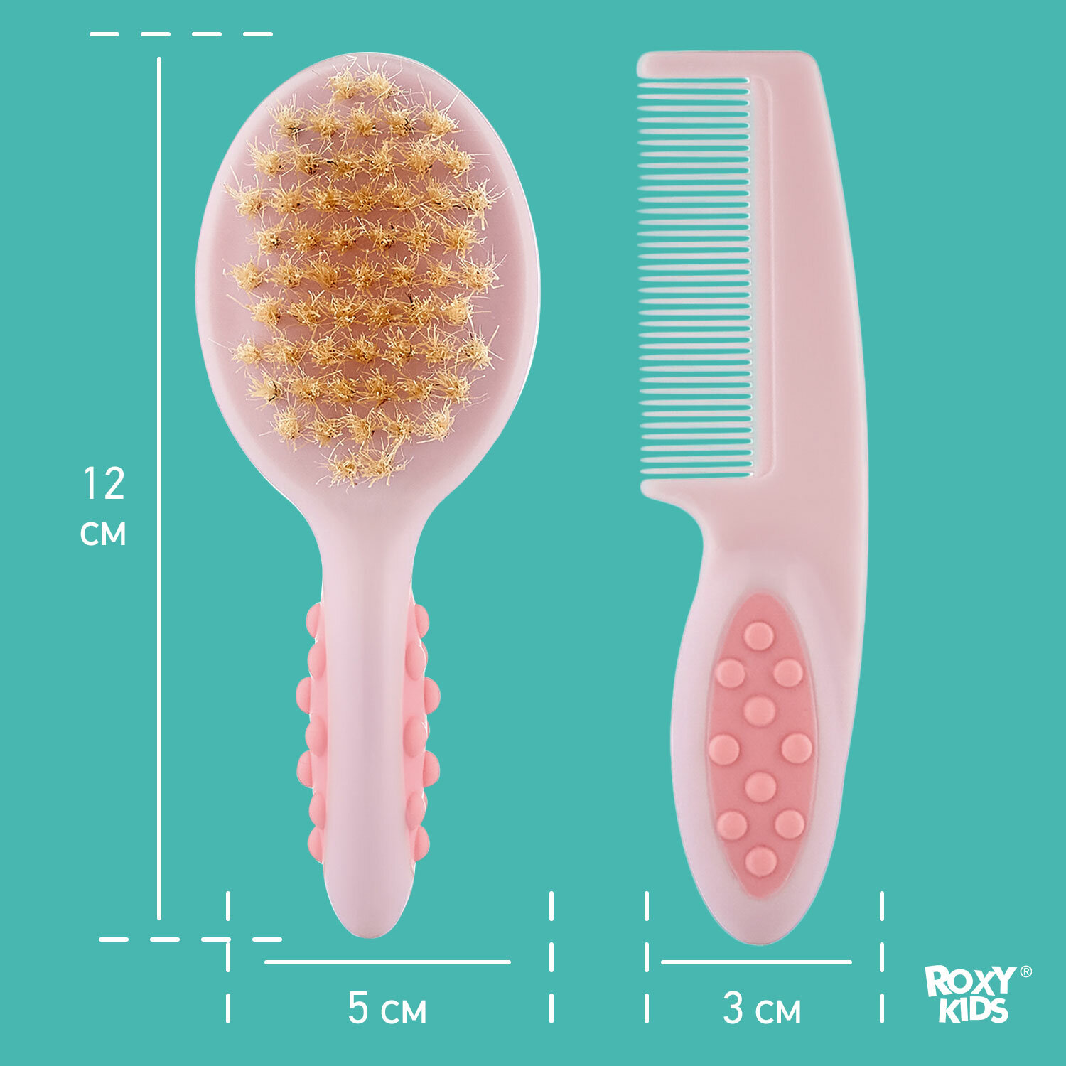 Детская щеточка с расческой от ROXY-KIDS . Полипропилен, ворс из натуральной щетины