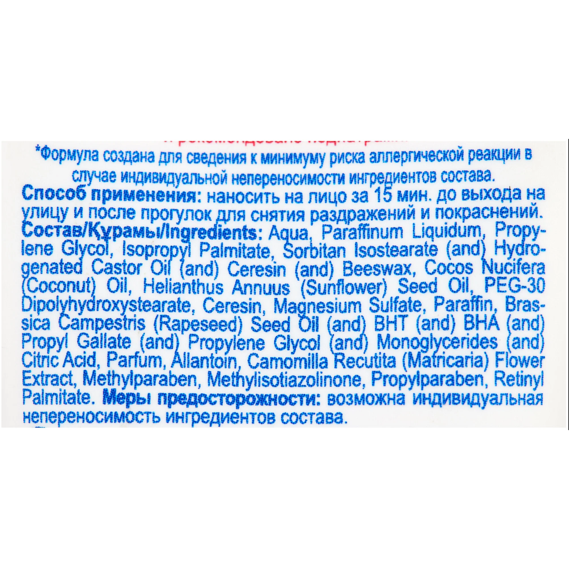 | Отзыв: | Страшенный состав для детского крема? много критичных компонентов, ну и цена благодаря этому всего порядка 60 руб. С заявленной функцией защиты от ветра и мороза справляется за счёт вредных компонентов в составе, которые на коже образует защитную пленку и не дают коже дышать. Моя рекомендация- если и использовать данный крем, то только по прямому назначению НА КОЖУ ЛИЦА перед выходом на МОРОЗ минут за 30. Пришли домой, щечки отогрели и СМЫЛИ КРЕМ С КОЖИ, так как кожа под ним не дышит |