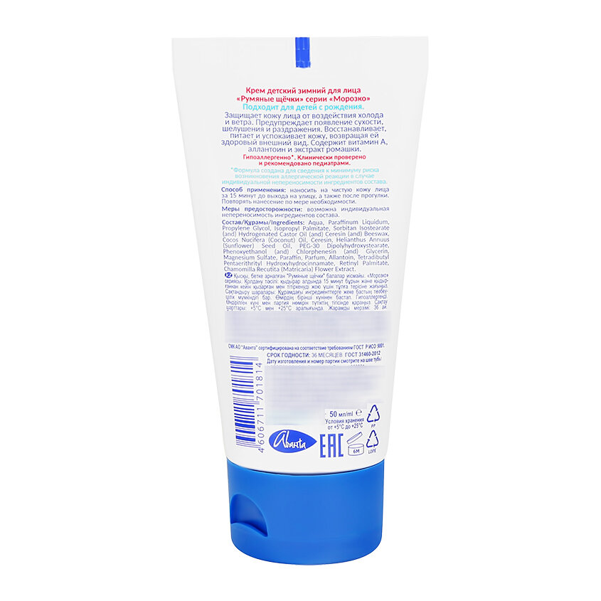 Крем детский зимний Аванта "Морозко" Румяные щечки, 50 мл