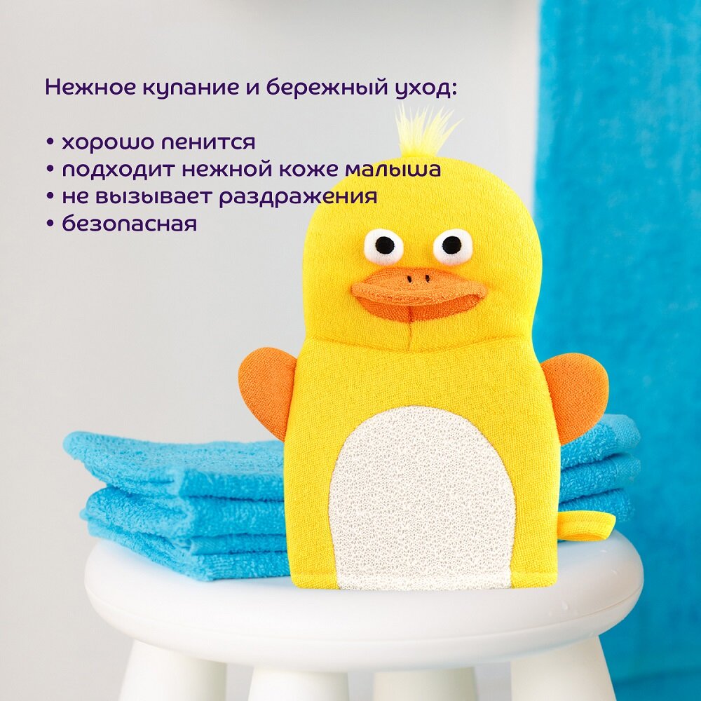 Мочалка-варежка детская для купания Доляна «Уточка», 21 см (1шт.)