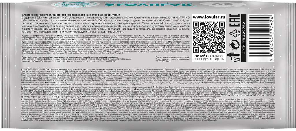 СохранитьВлажные салфетки LOVULAR Hot Wind, пластиковая крышка, 96 шт., 1 уп. интересное: