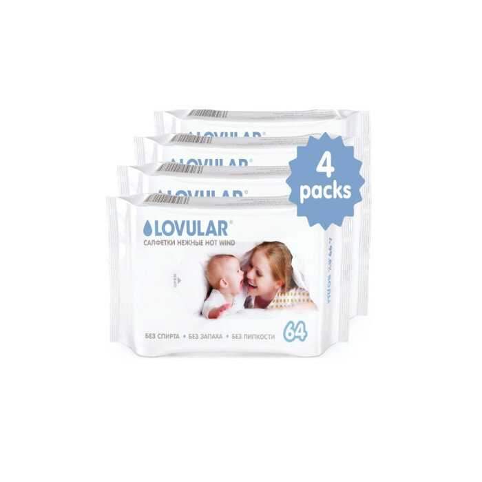 Влажные салфетки LOVULAR 4*96 шт/уп