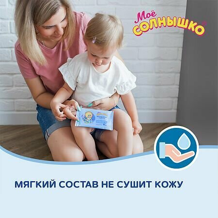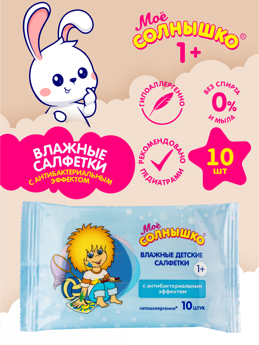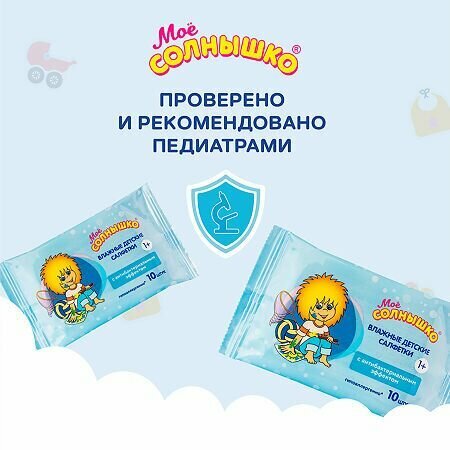 Салфетки влажные Мое солнышко 10 шт с антибактериальным эффектом - 1 штука