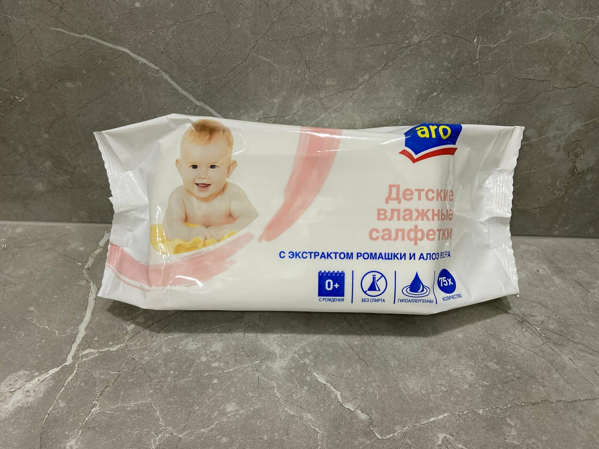 Детские влажные салфетки Aro, с экстрактом ромашки и Алоэ Вера, 75 шт. - Авангард