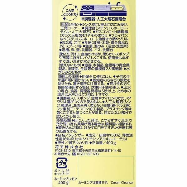 Kao Homing Lemon Универсальный чистящий и полирующий крем для кухни Лимон 400 гр