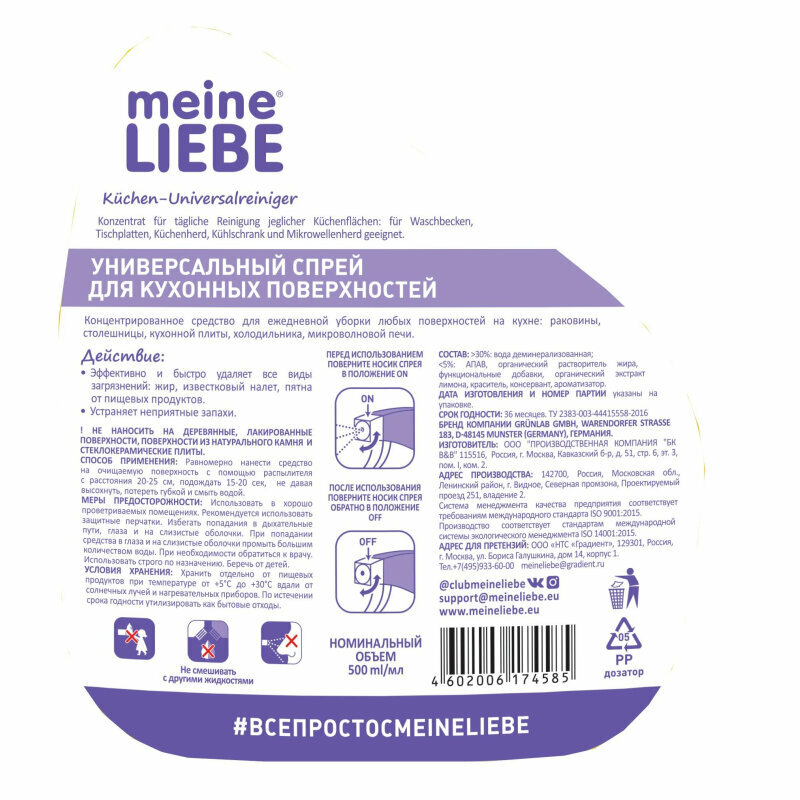 MEINE LIEBE Универсальный спрей для кухонных поверхностей 500мл