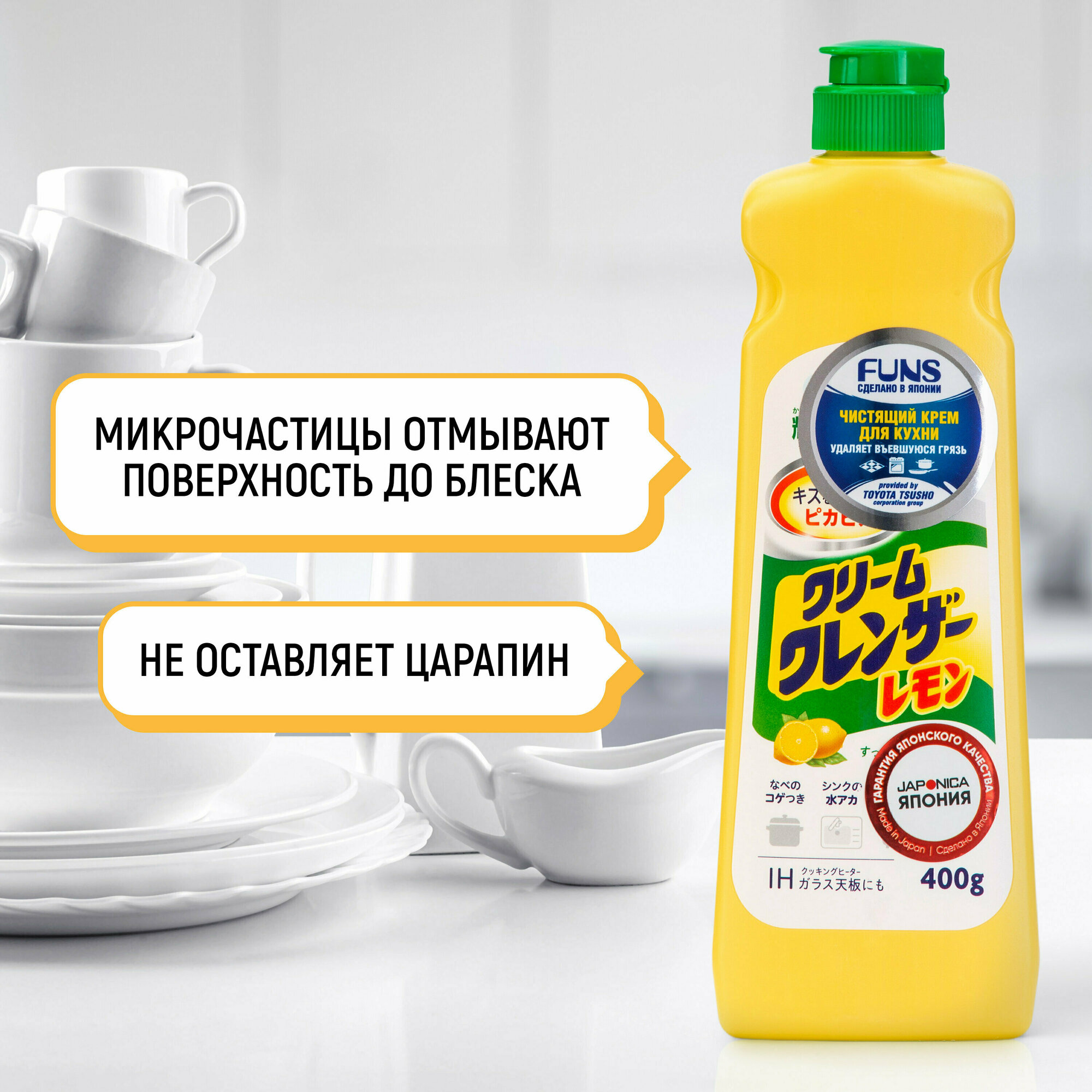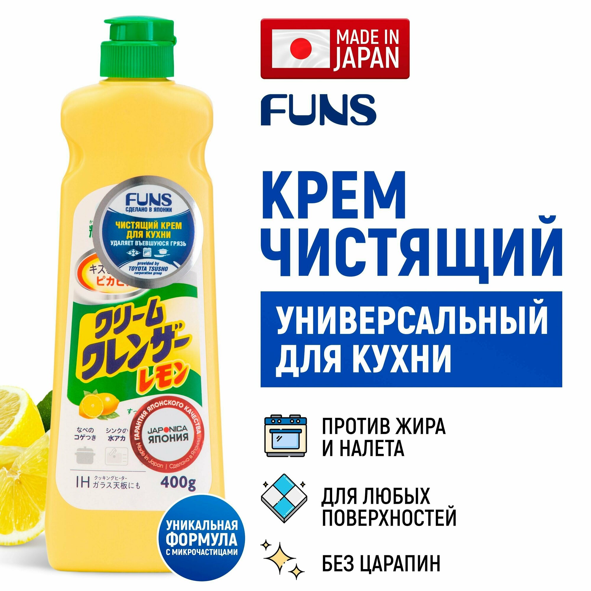FUNS Крем чистящий для кухни и посуды с ароматом лимона (Япония) - 400 мл