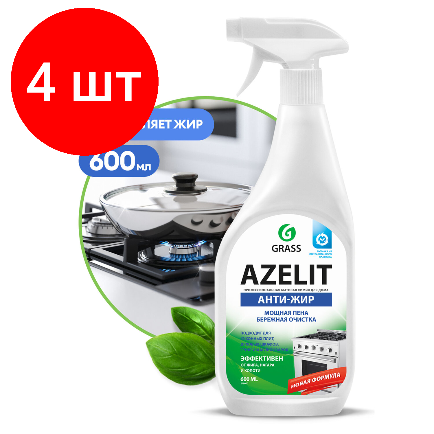 Купить Упаковка 4 шт. Средство для чистки плит, духовок, грилей от жира/нагара 600 мл GRASS AZELIT, щелочное, распылитель, 97537, 218600
