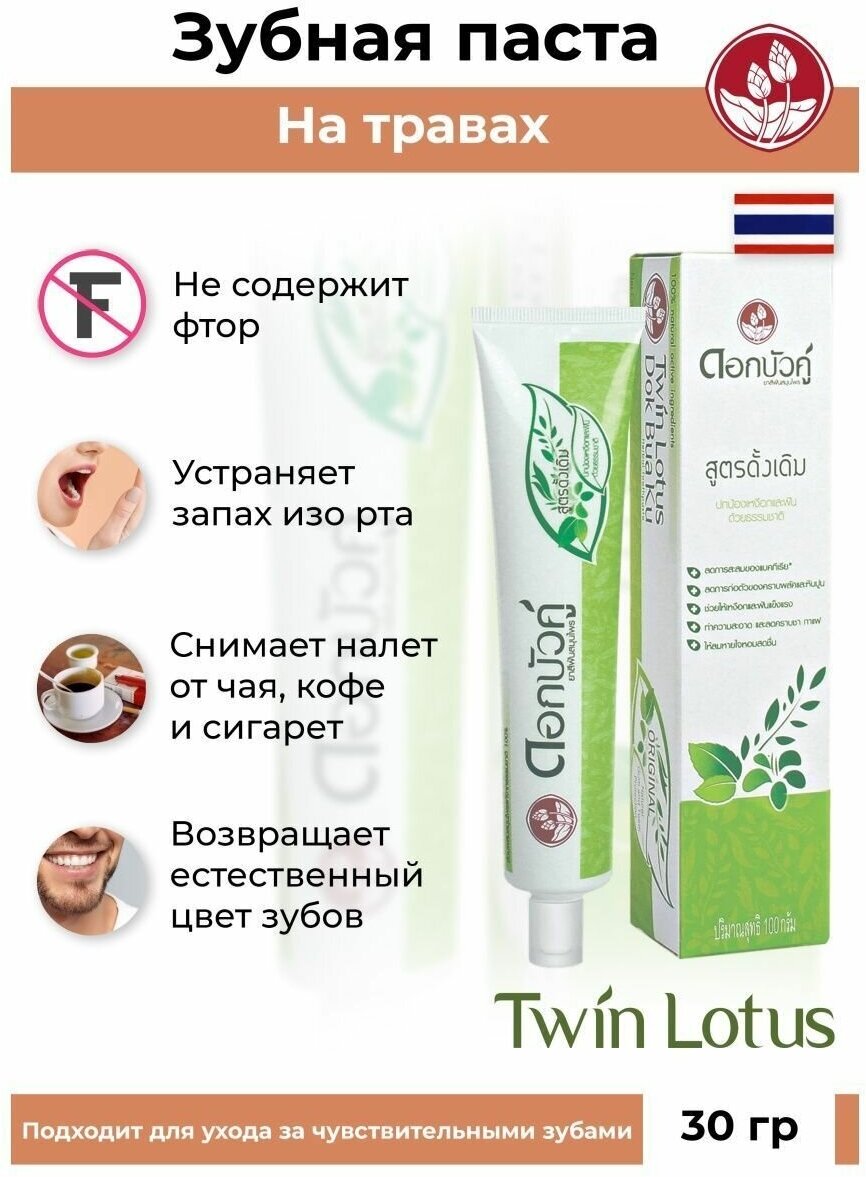 Зубная паста Twin Lotus Dok Bua Ku Herbal Toothpaste Original / вес 30 г