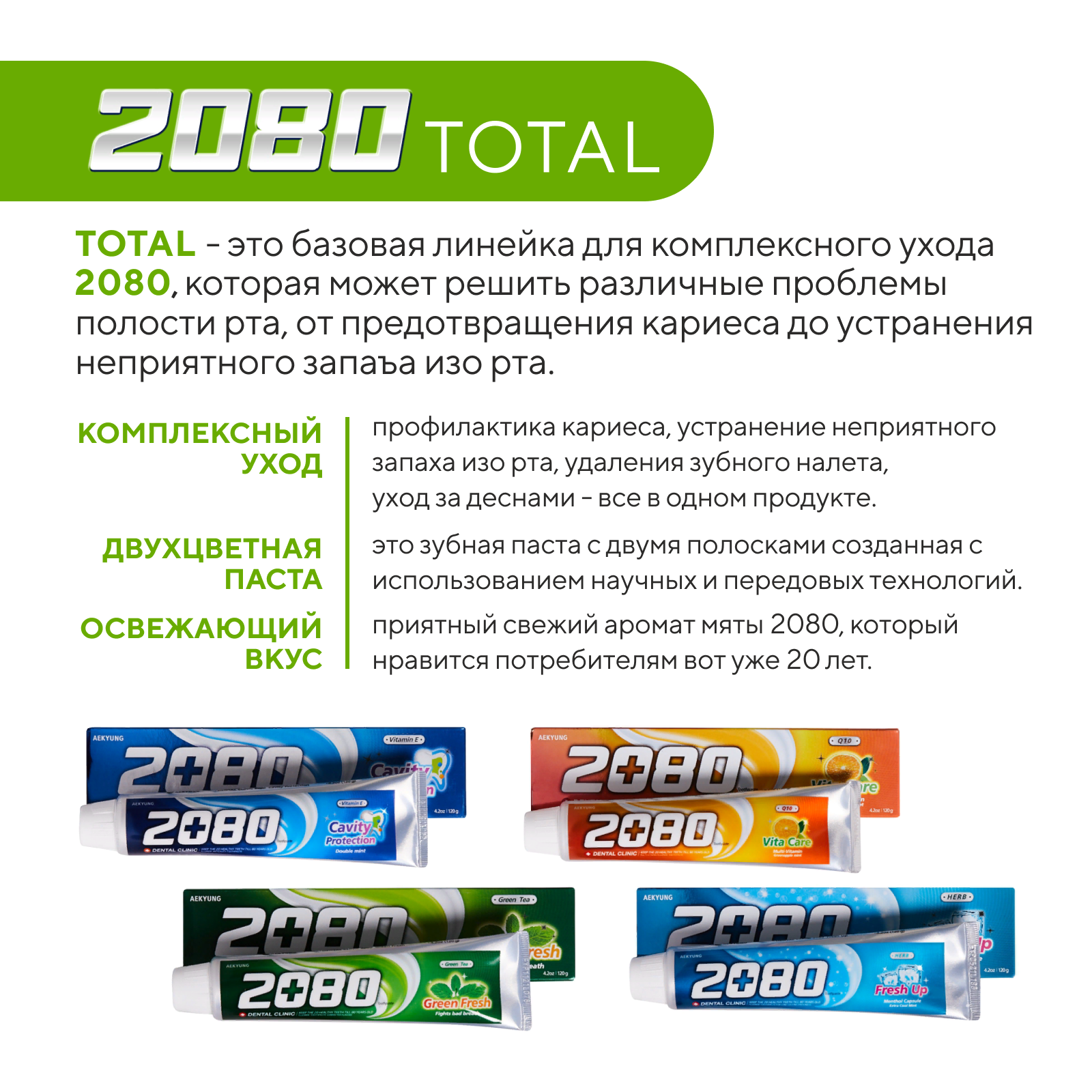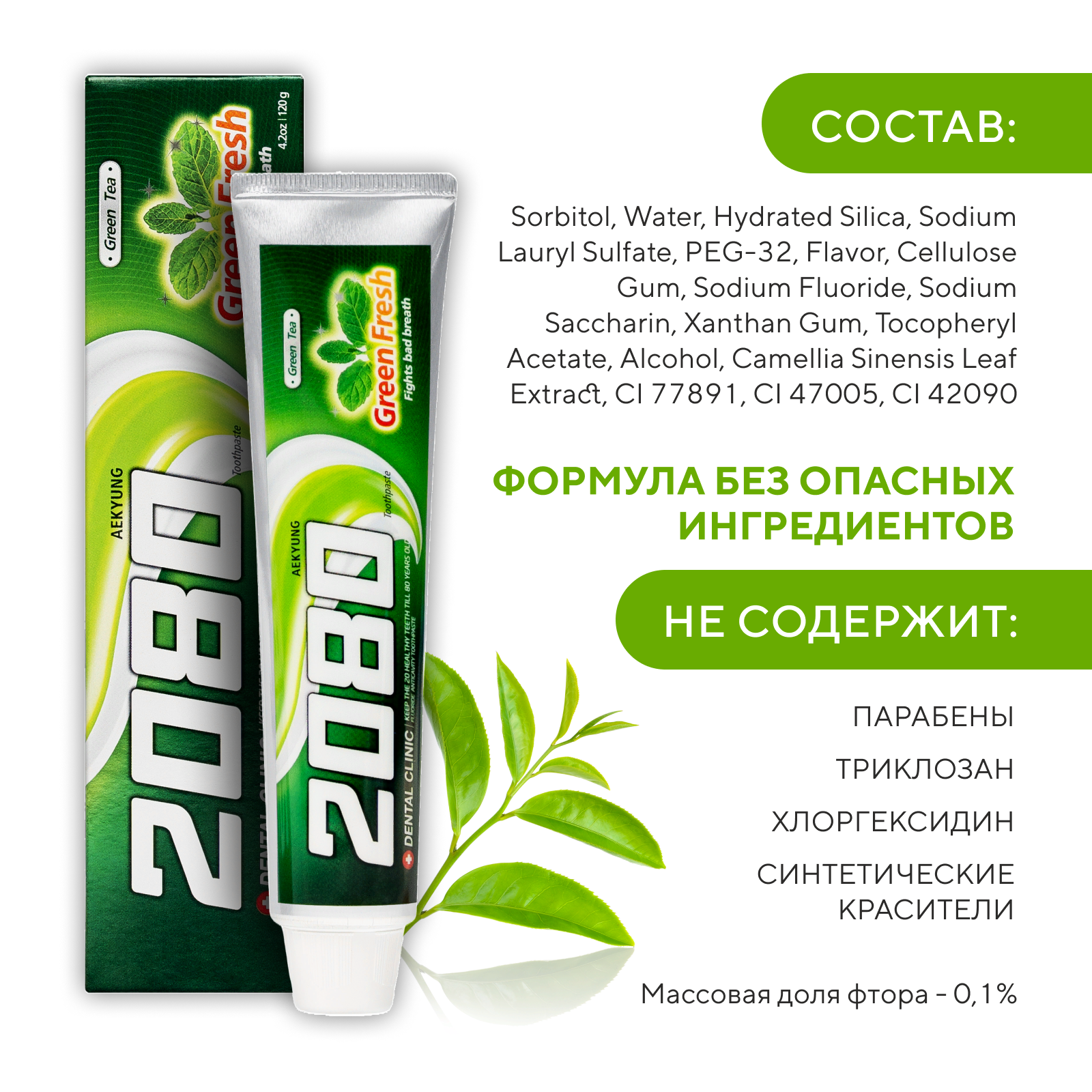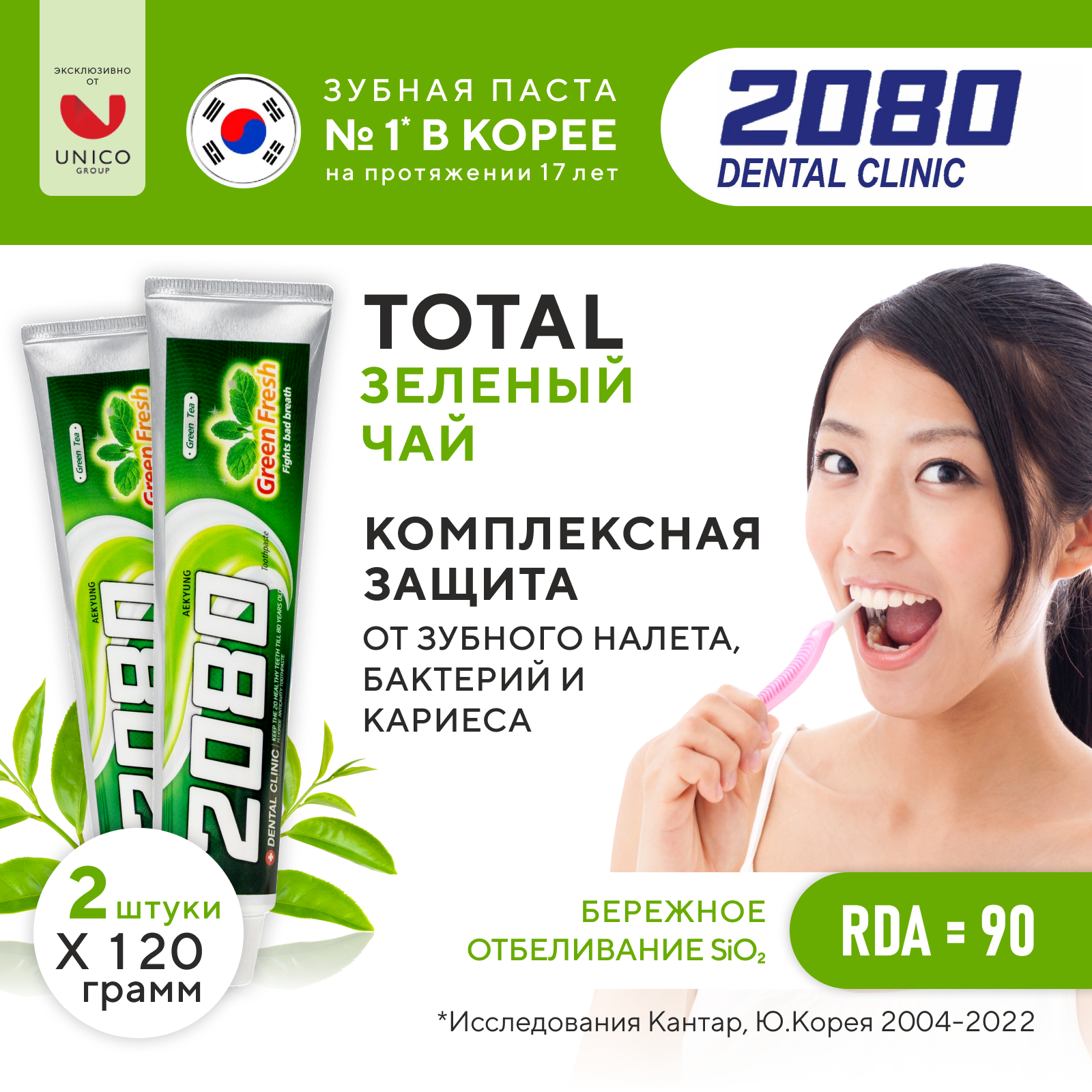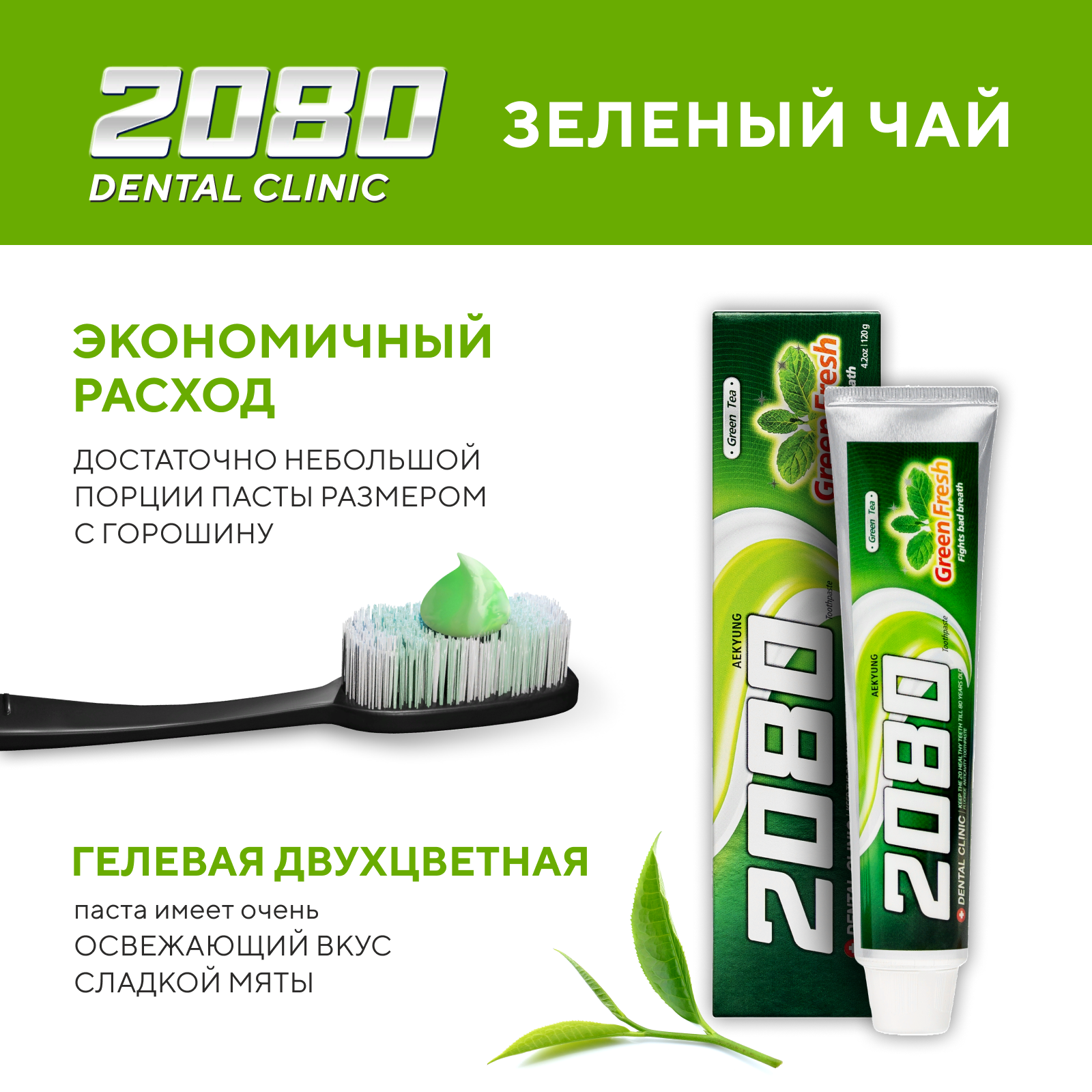 Купить Dental Clinic 2080 Набор Зубная паста против кариеса Зеленый чай, 2 шт х 120